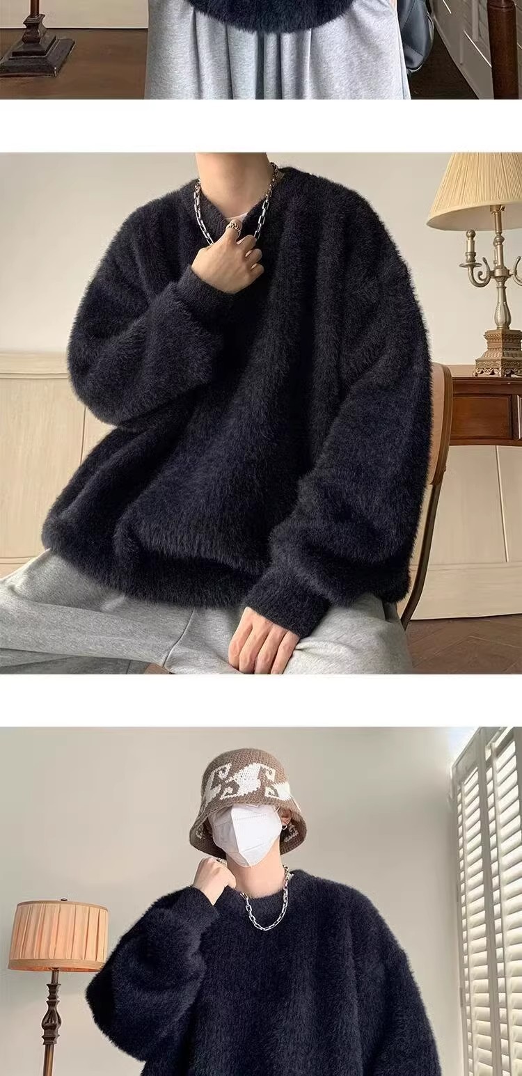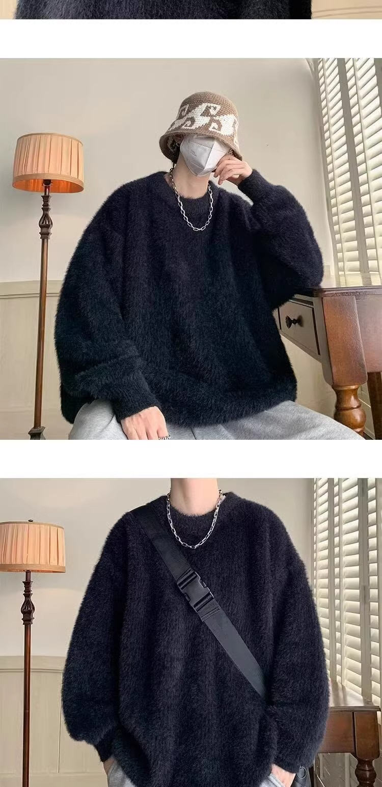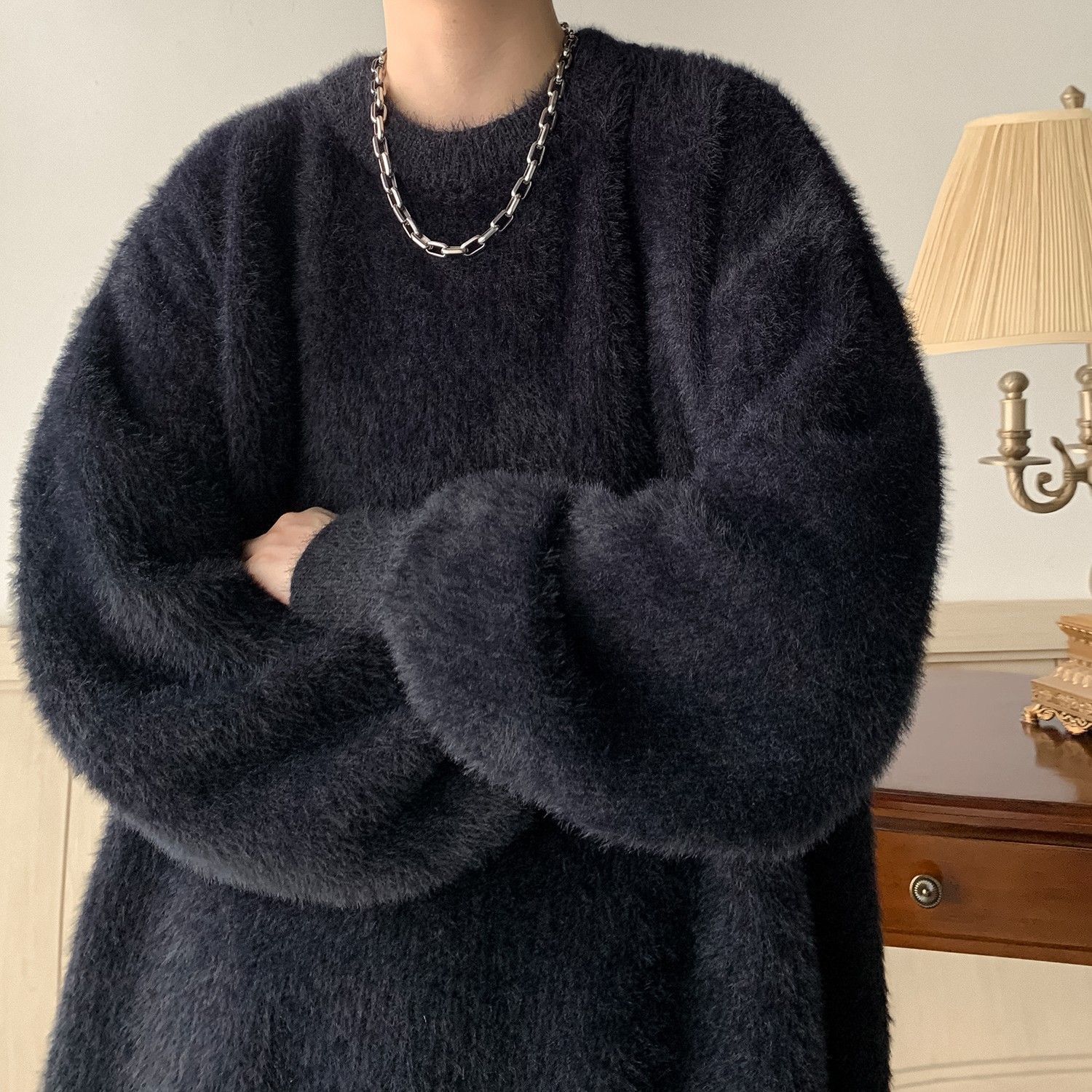 남자 Mauhair 스웨터 가을과 겨울 하이 엔드 센스 두꺼운 라운드 넥 스웨터 게으른 스타일 아메리칸 루즈 재킷