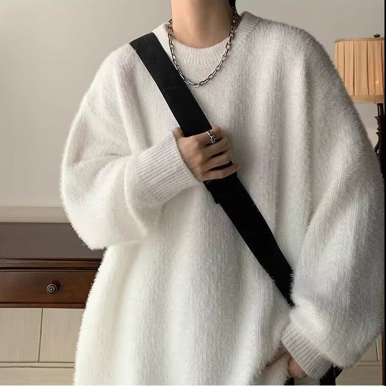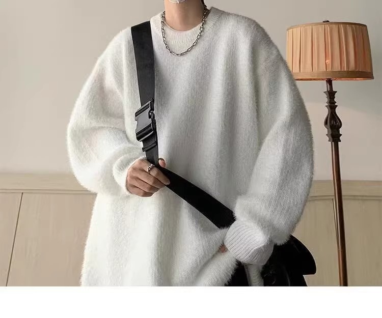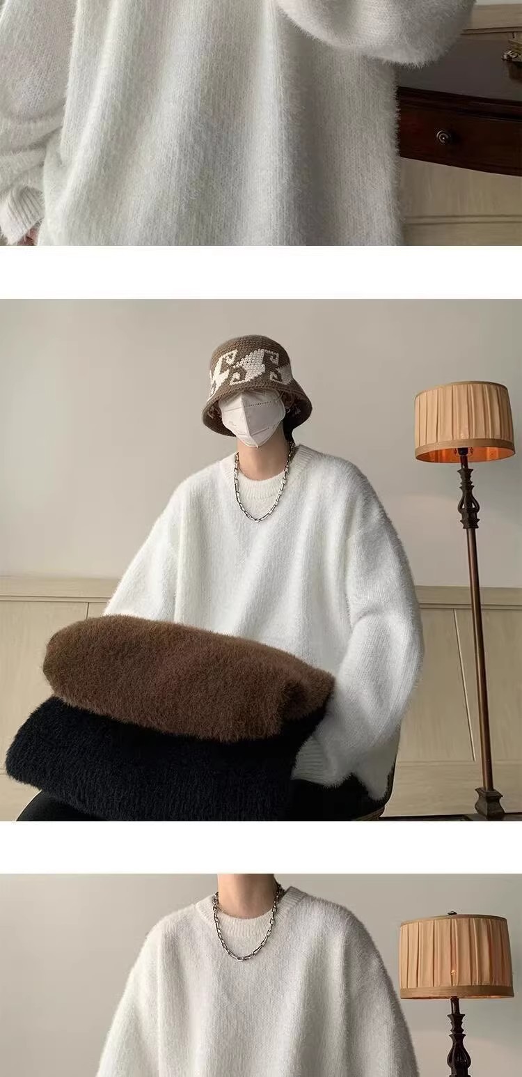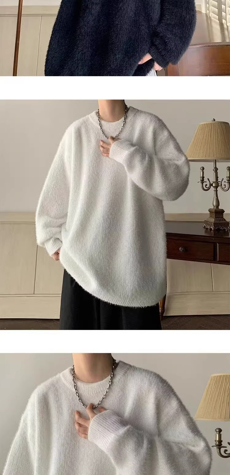 남자 Mauhair 스웨터 가을과 겨울 하이 엔드 센스 두꺼운 라운드 넥 스웨터 게으른 스타일 아메리칸 루즈 재킷