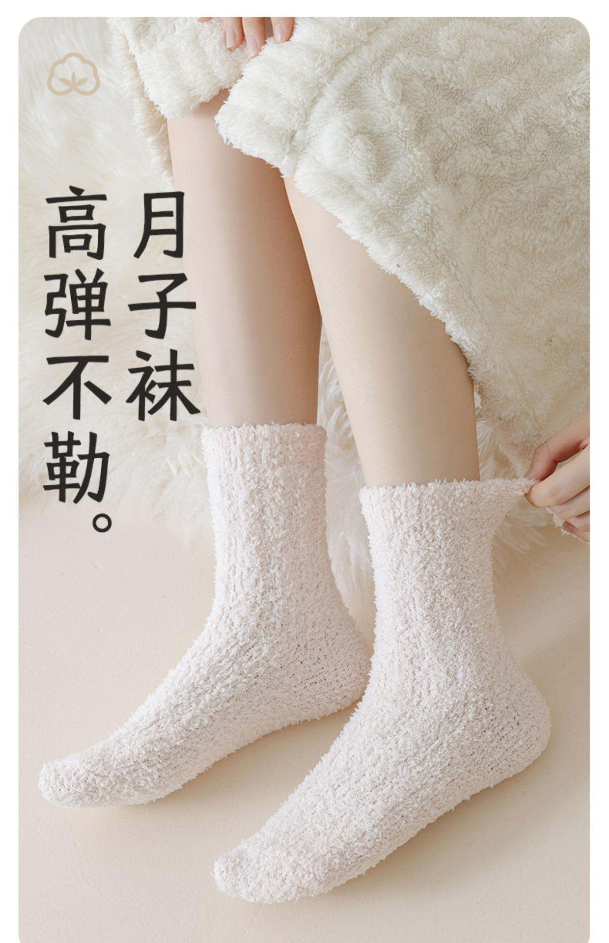 Yuezi 양말 여성의 가을 및 겨울 모성 산후 기모 두꺼운 느슨한 겨울 수면 겨울 산호 양털 임산부 양말