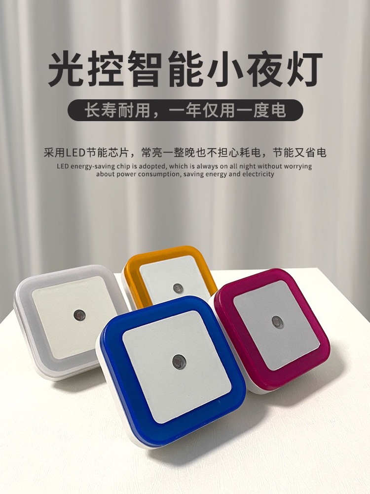 공장 도매 국경 사각형 LED 야간 조명 지능형 조명 제어 유도 플러그인 눈 보호 램프 맞춤형 로고 선물스토어 가기