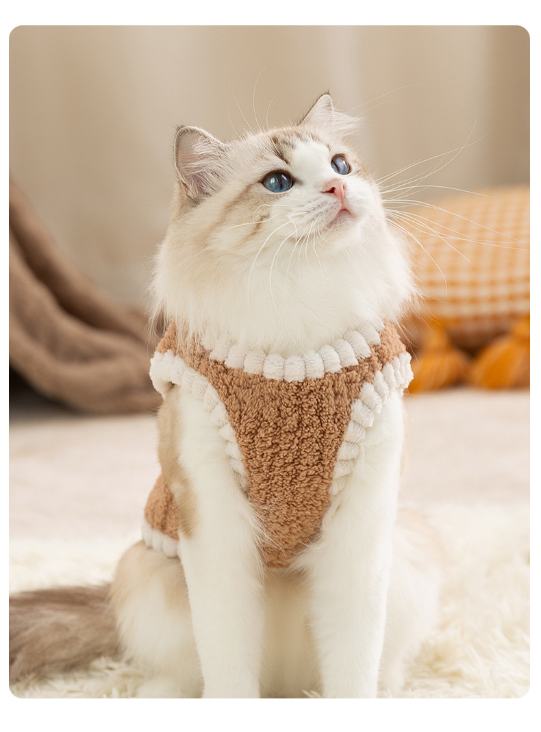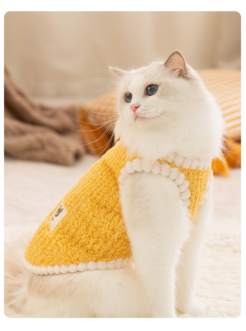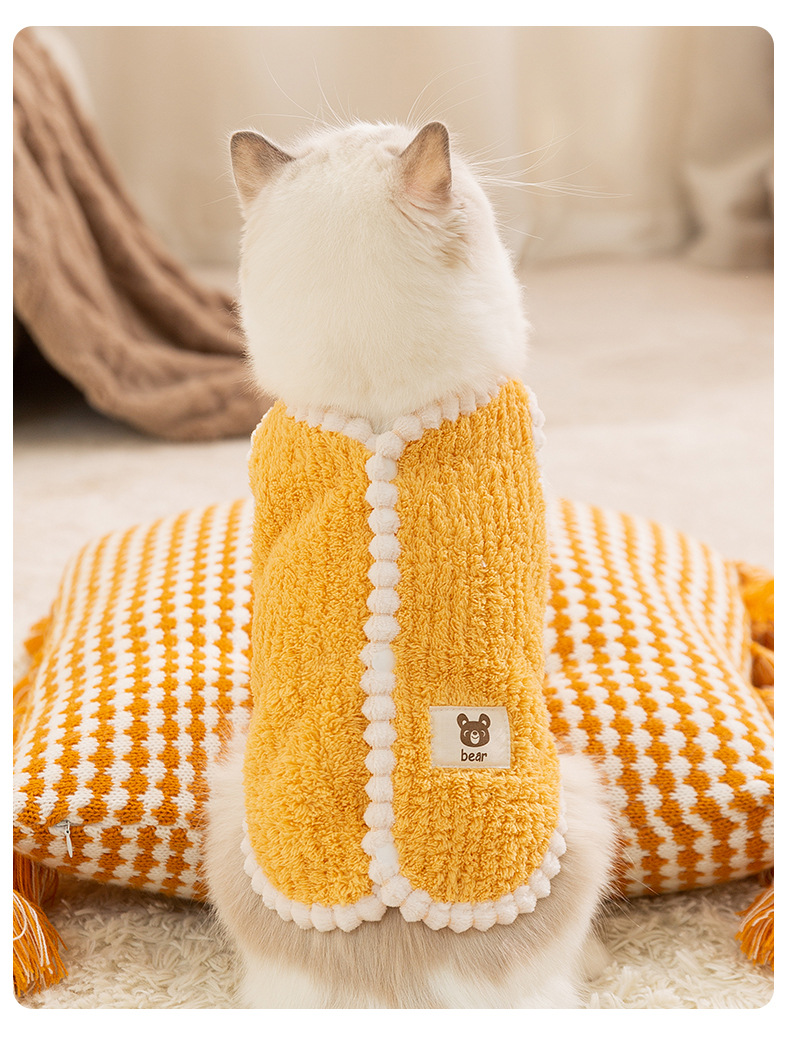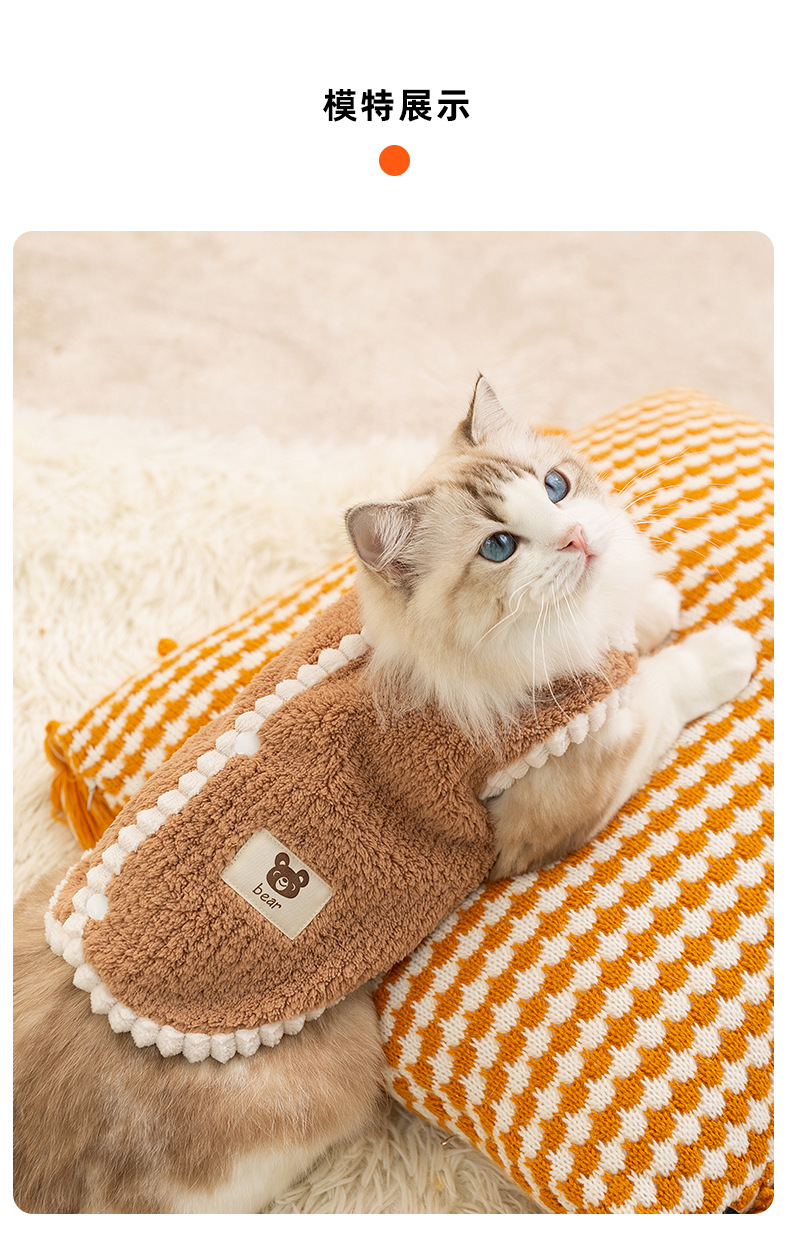 고양이 가을과 겨울 머리없는 고양이 한국식 곰 스티커 줄무늬 조끼 개 두 다리 양털 애완 동물 고양이 옷스토어 가기