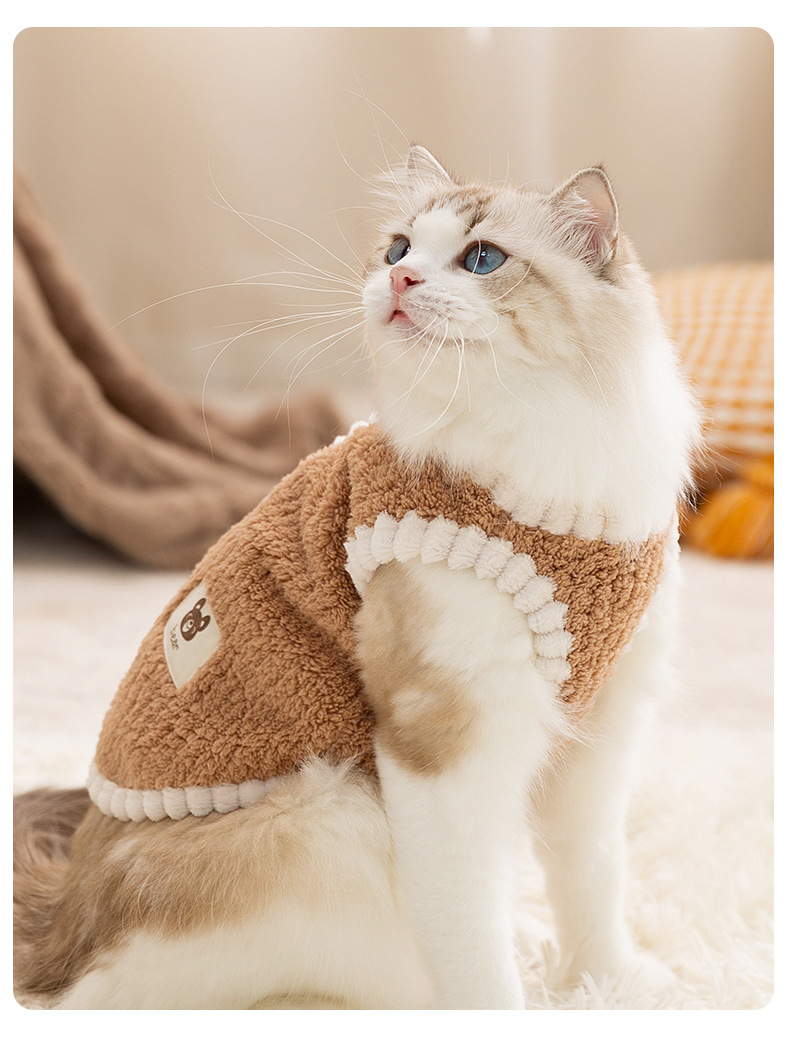 고양이 가을과 겨울 머리없는 고양이 한국식 곰 스티커 줄무늬 조끼 개 두 다리 양털 애완 동물 고양이 옷