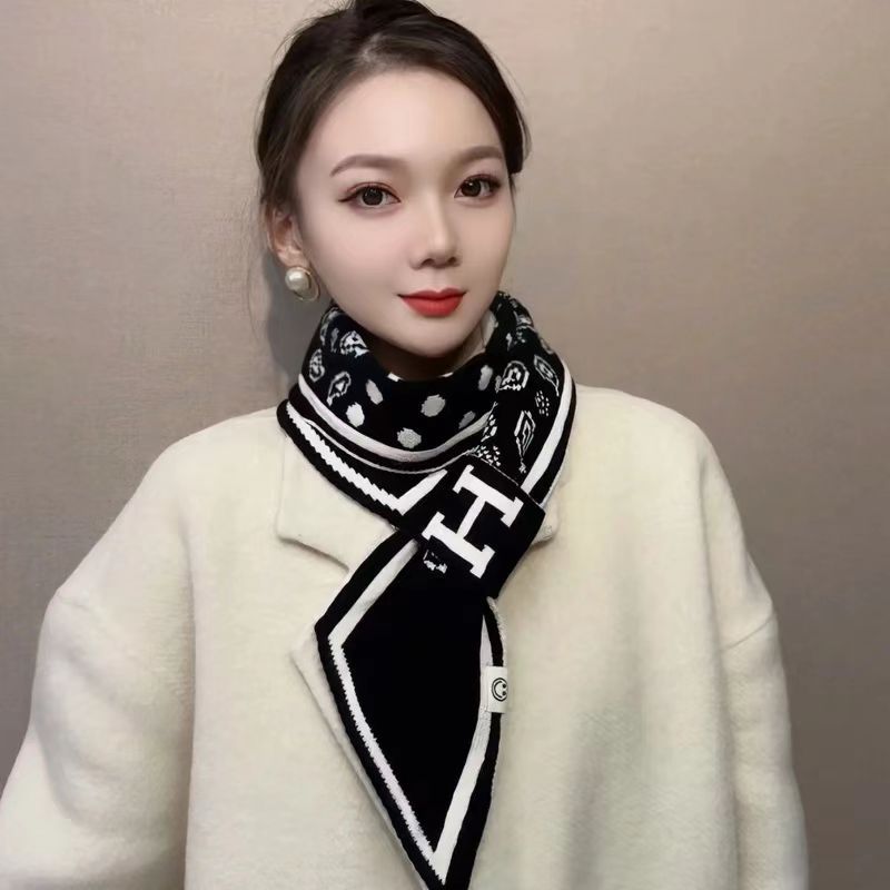 여성의 작은 스카프 폭발 2024 새로운 스타일 스카프 목 보호 여성의 가을과 겨울 따뜻한 서양식 두꺼운 고급 목도리