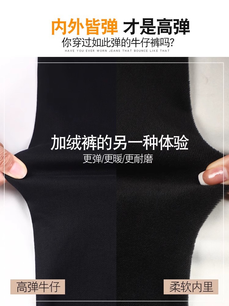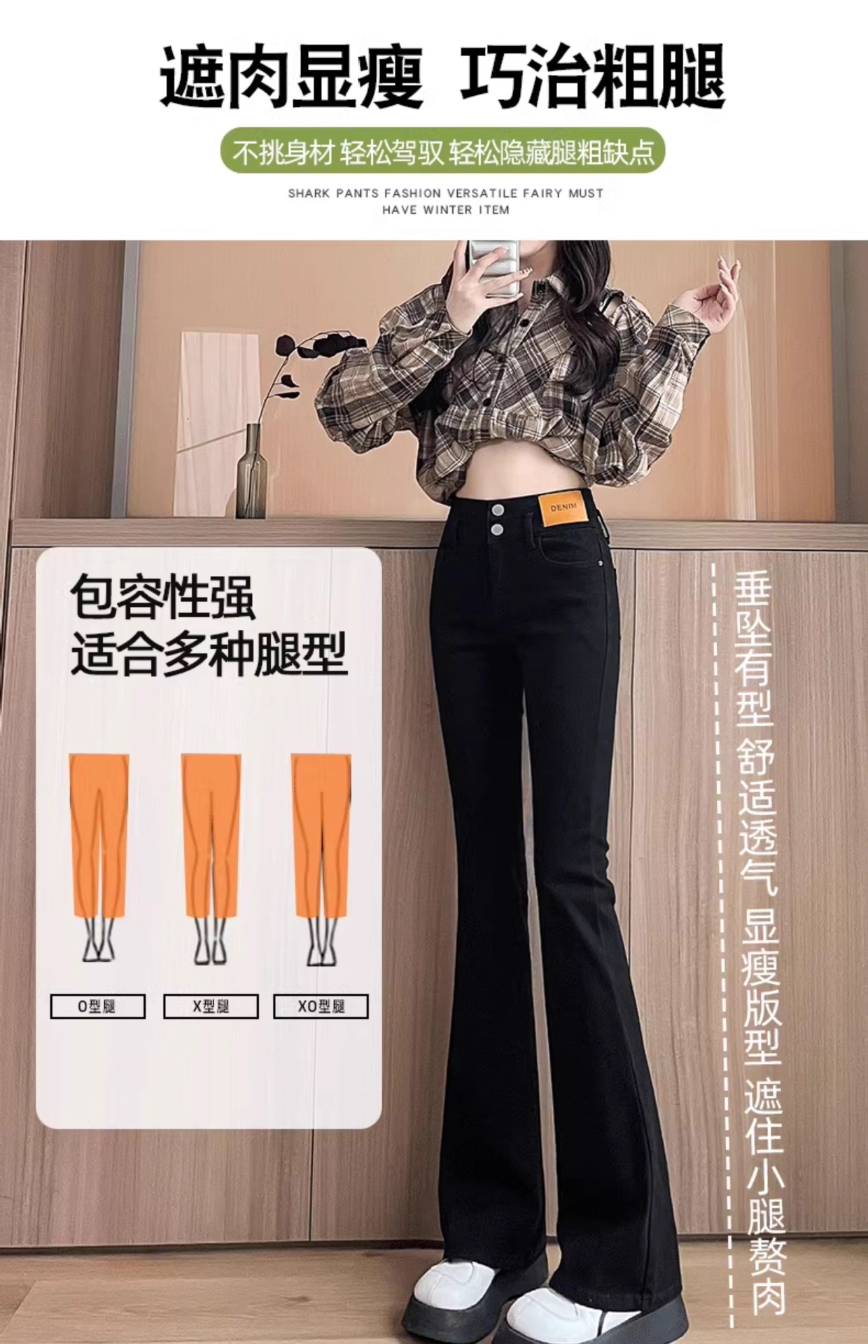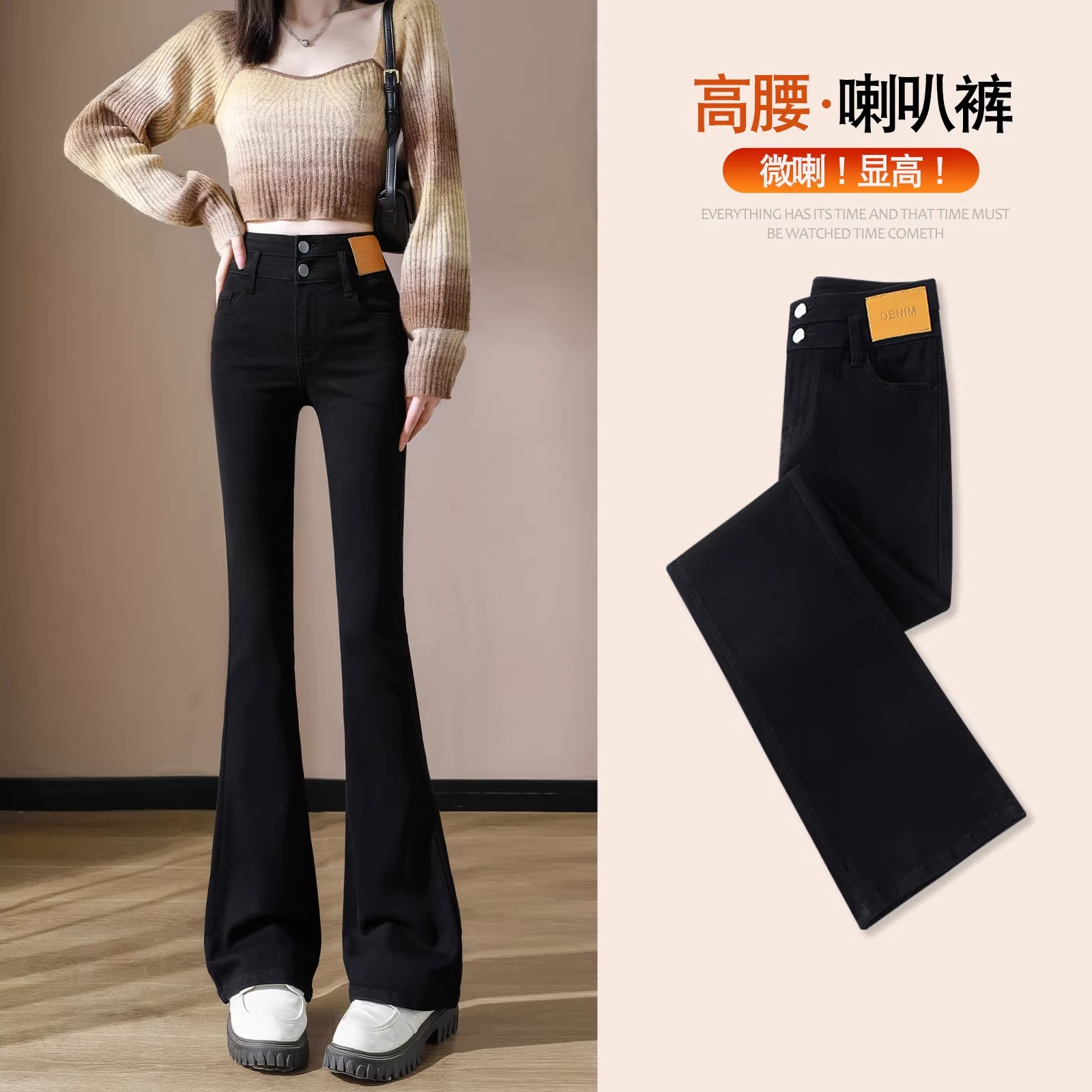 벨벳 안감 두꺼운 플레어 팬츠 여성용 겨울 2025 신상 가을 겨울 하이웨이스트 슬림핏 블랙 팬츠 약간의 플레어 데님 팬츠스토어 가기