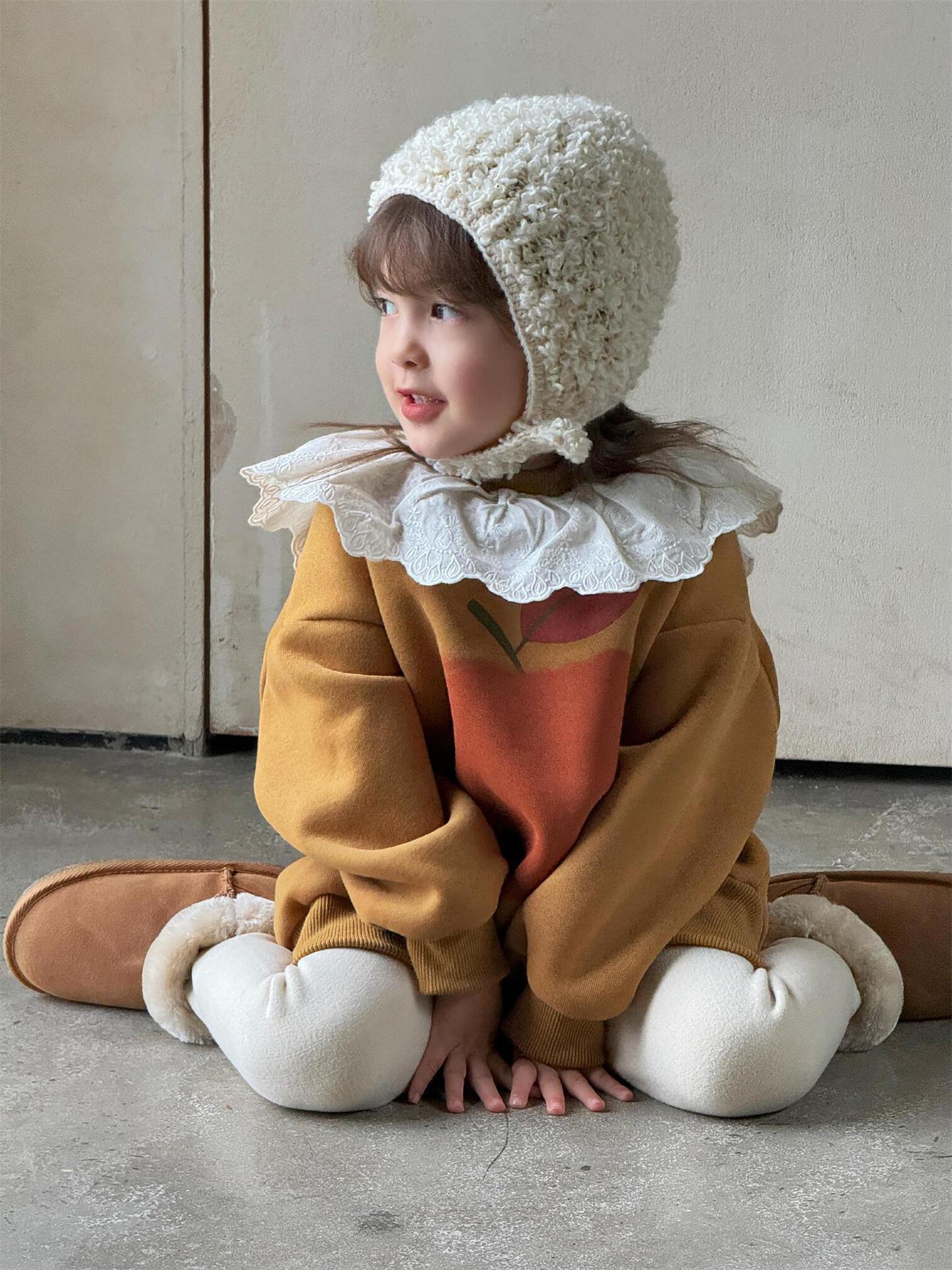 탑 에그 한국 아동복 2024 겨울 새 소녀상 기모 두꺼운 귀여운 긴 레이스 칼라 땀