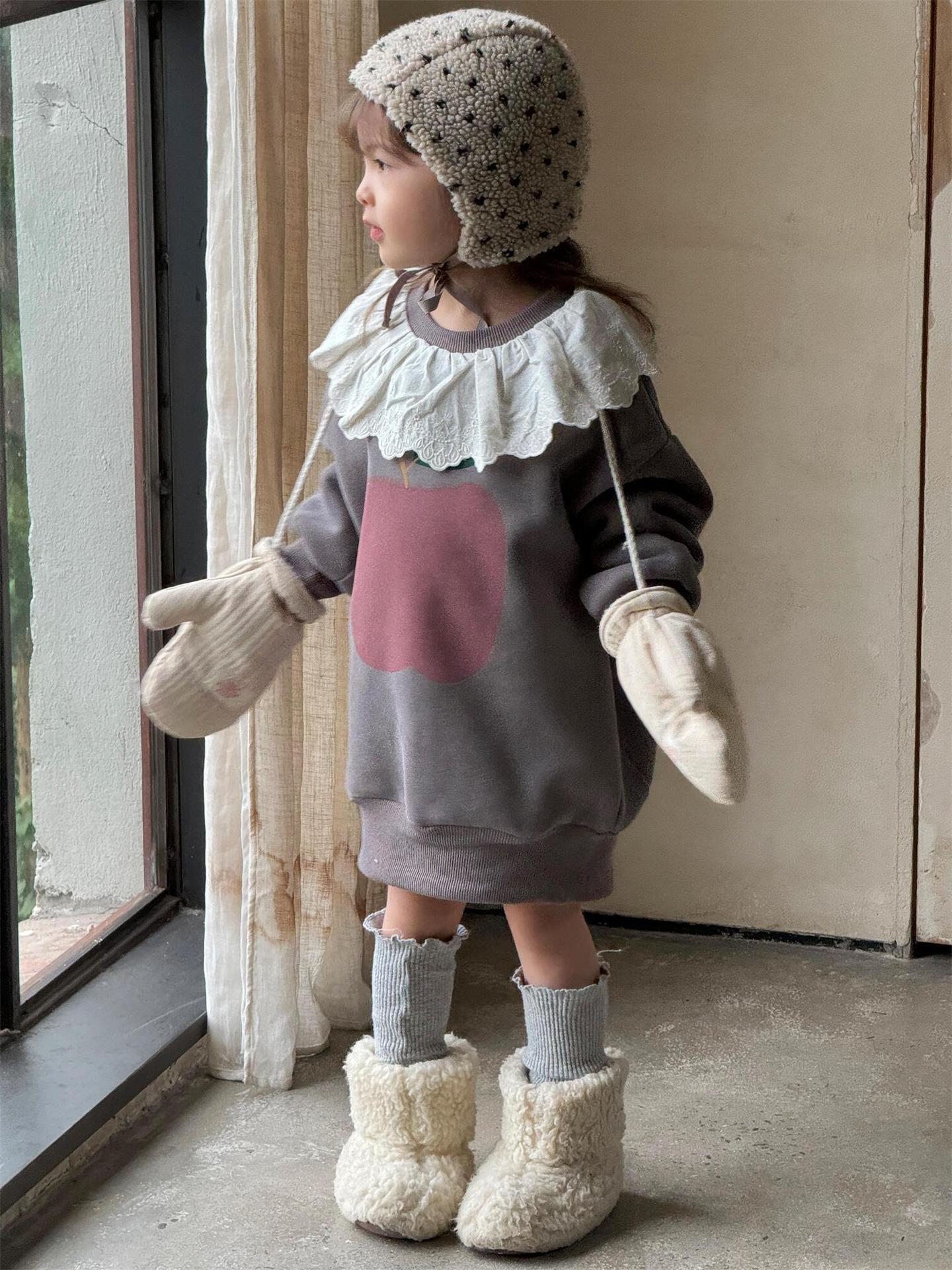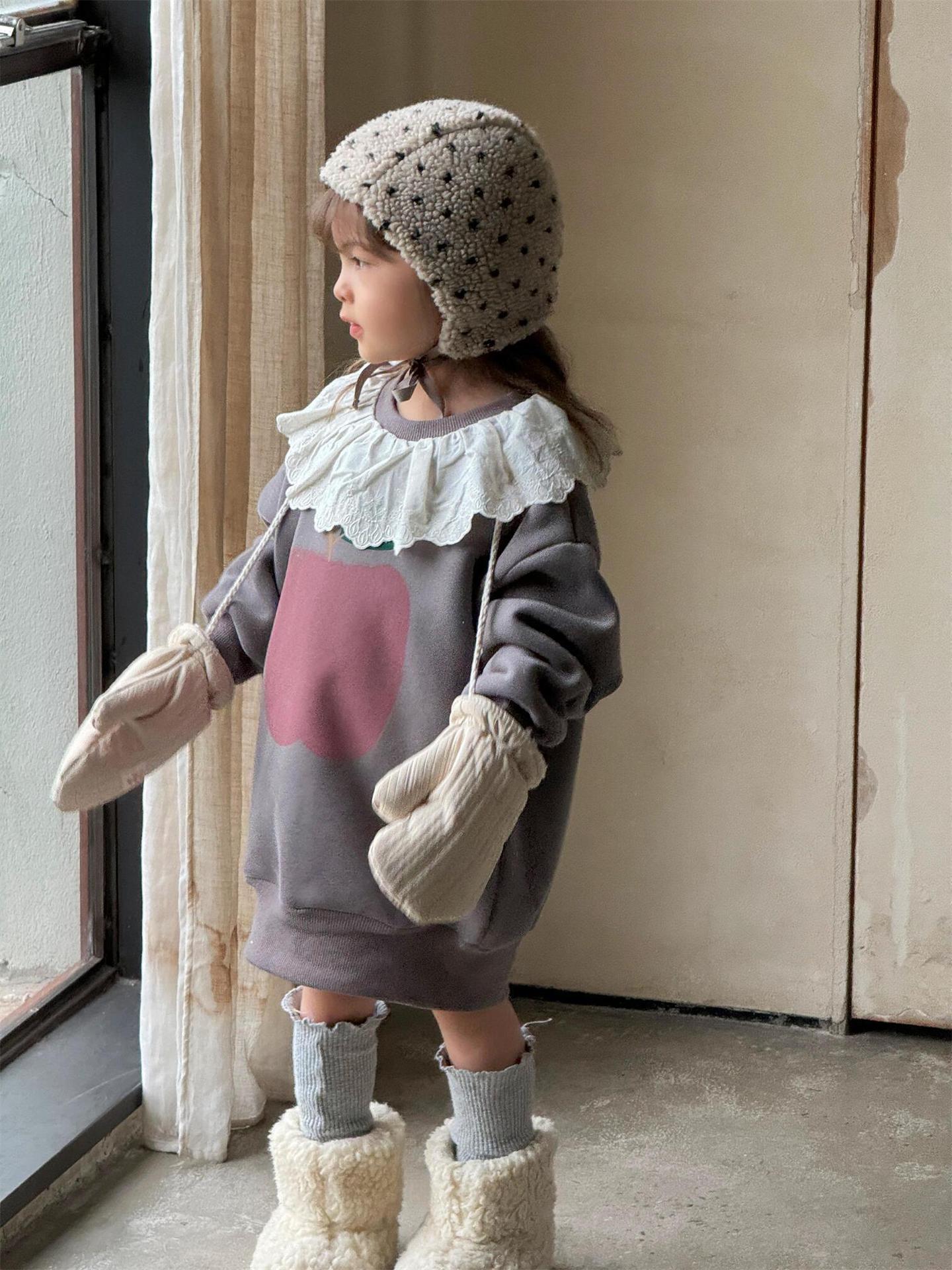 탑 에그 한국 아동복 2024 겨울 새 소녀상 기모 두꺼운 귀여운 긴 레이스 칼라 땀스토어 가기