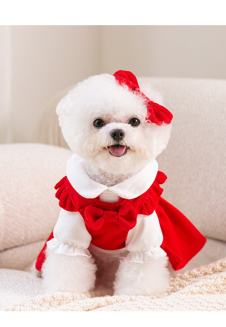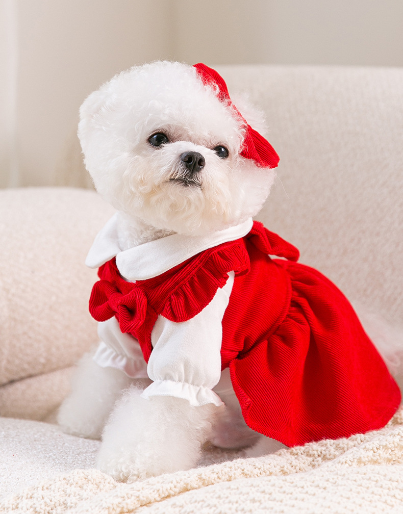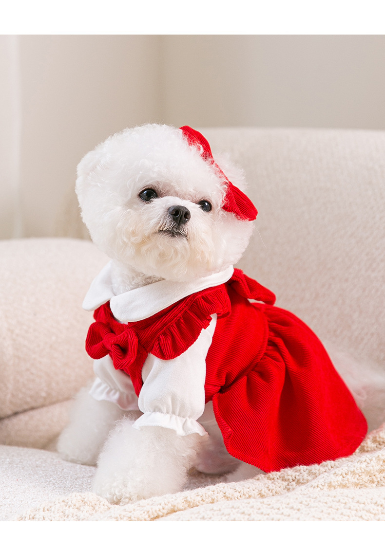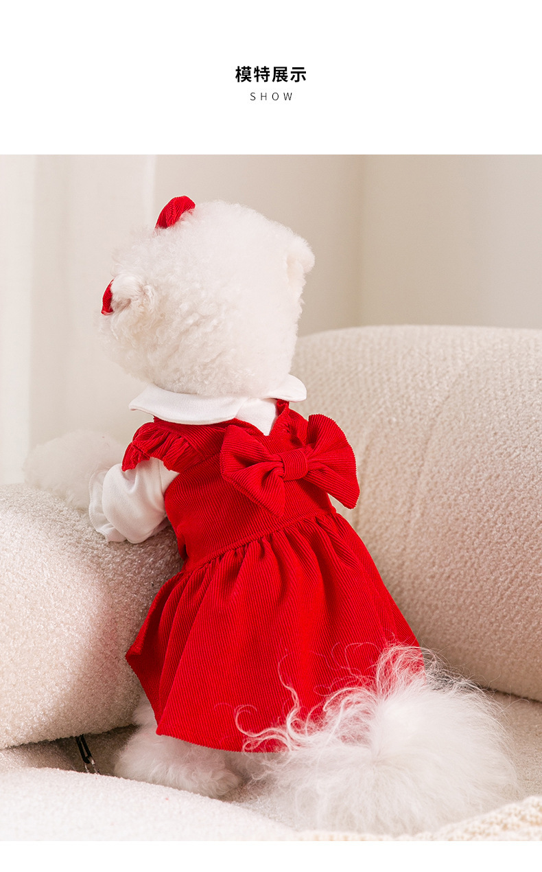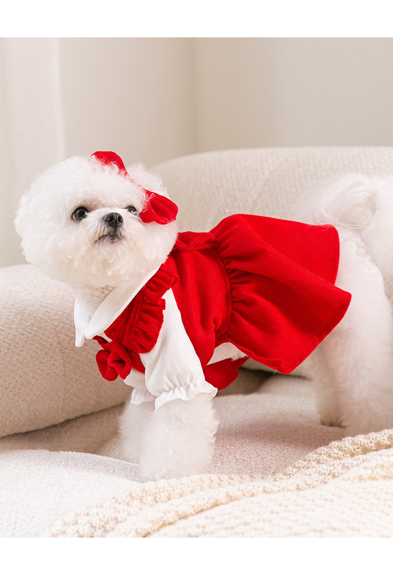 봄과 가을 강아지 활 원피스 세트 중형 작은 개 고양이 새해 애완 동물 옷