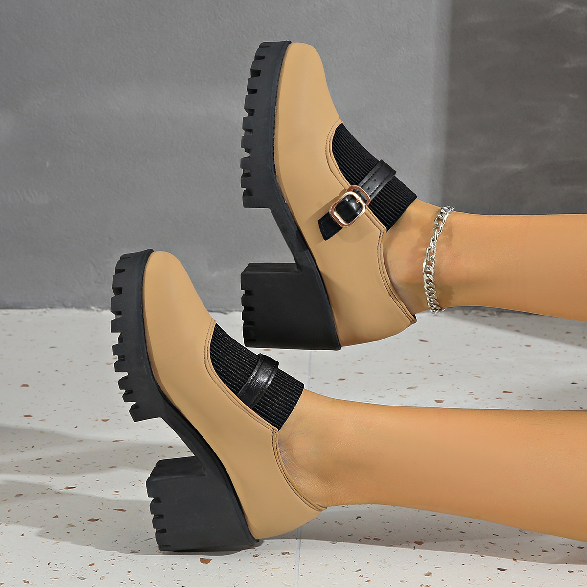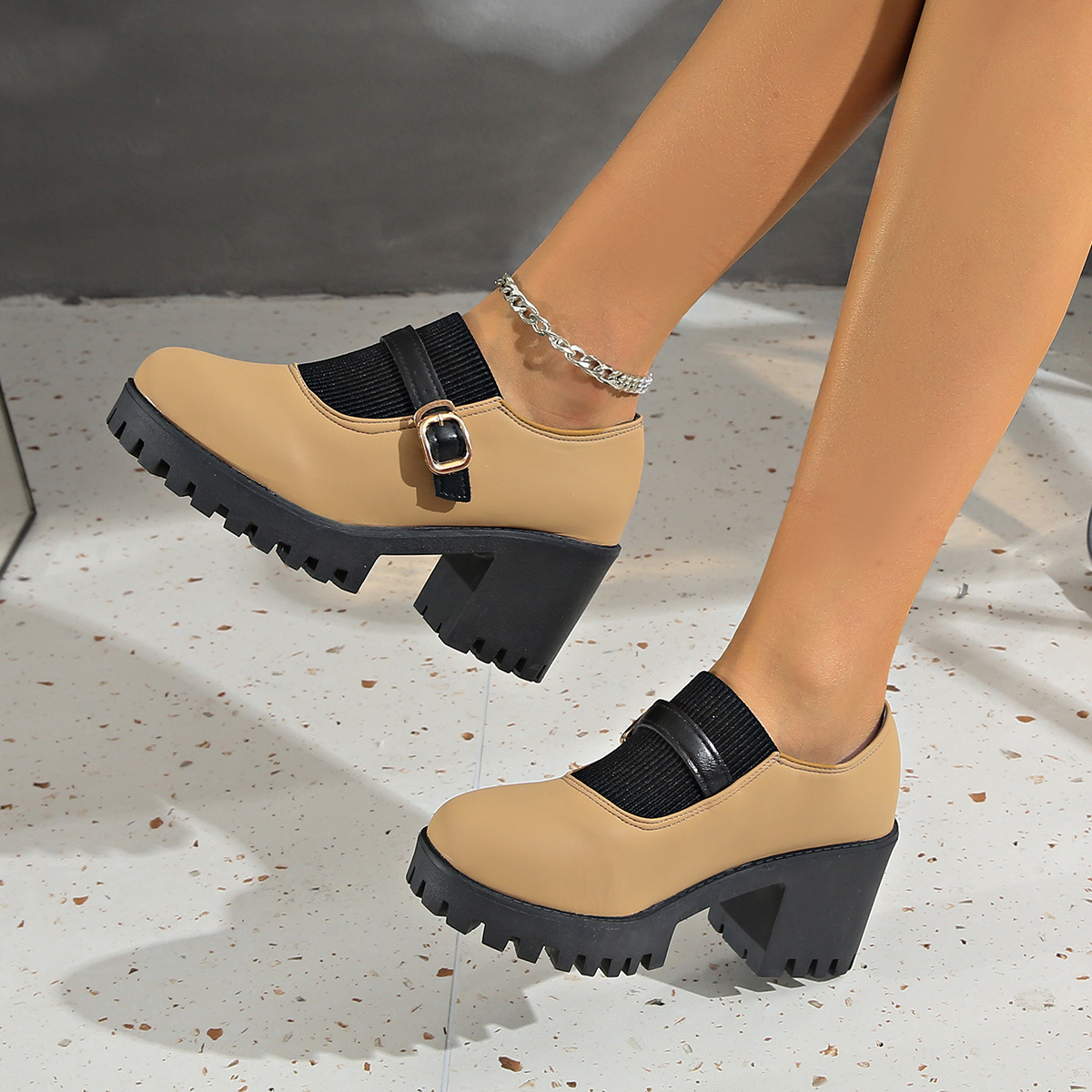 국경 간 대외 무역 플러스 사이즈 하이힐 신발 여성의 2024 가을 새로운 패션 라운드 헤드 버클 두꺼운 뒤꿈치 여성용 신발 도매스토어 가기