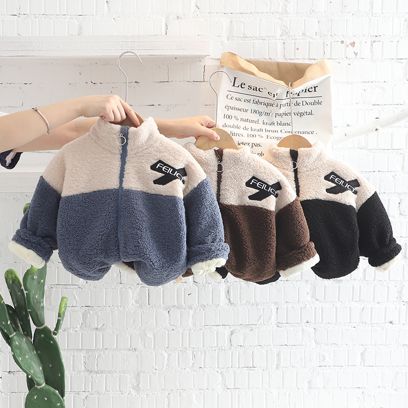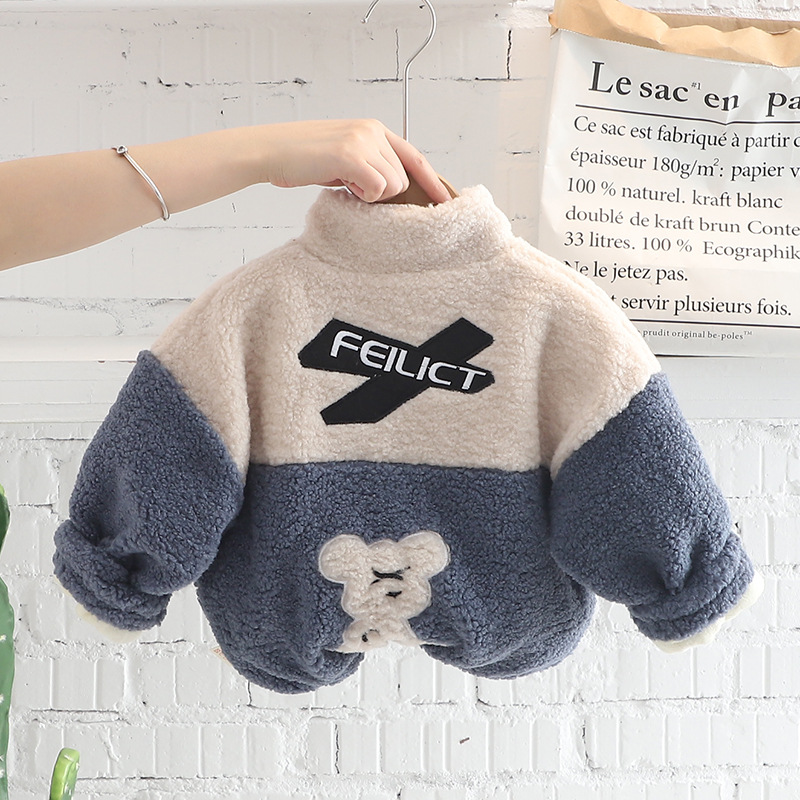 소년 세트 어린이 가을 착용 플러스 벨벳 재킷 스포츠 투피스 세트 2024 새로운 가을 및 겨울 봉제 아기 아동복스토어 가기