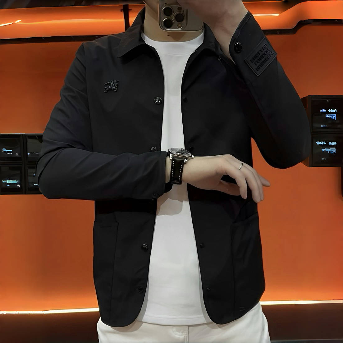 9051-1 얇은 코튼 재킷 남자의 가을 새로운 패션 캐주얼 라이트 럭셔리 향기로운 스타일 우아한 트렌드 성격 올 매치 솔리드 컬러