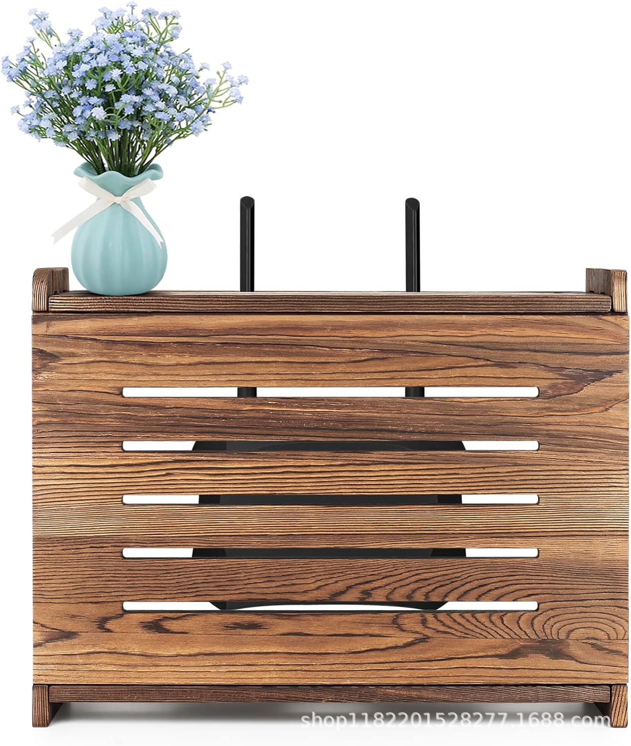 나무 벽걸이 형 라우터 보관 상자 단단한 나무 플러그인 보드 WiFi 레귤레이터 와이어 보드 차단 상자 정리 상자스토어 가기