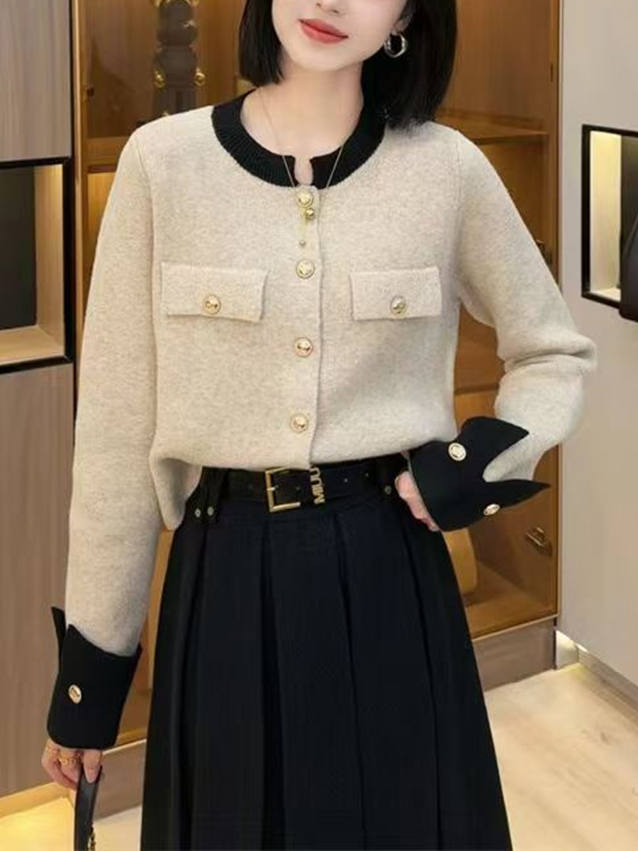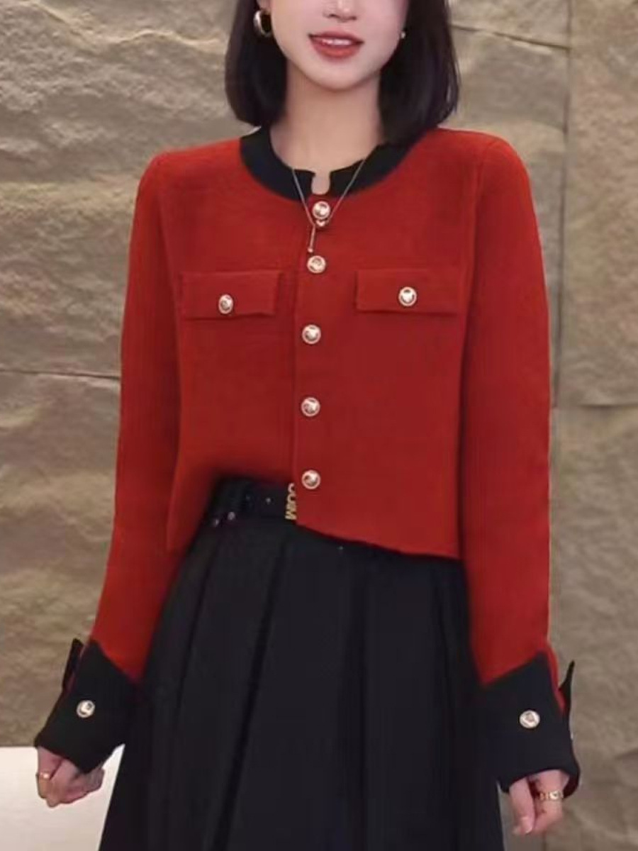 프랑스 스타일 샤넬 스타일 레드 스웨터 코트 여성의 2024 새로운 가을과 겨울 우아한 사교계 짧은 니트 카디건 탑