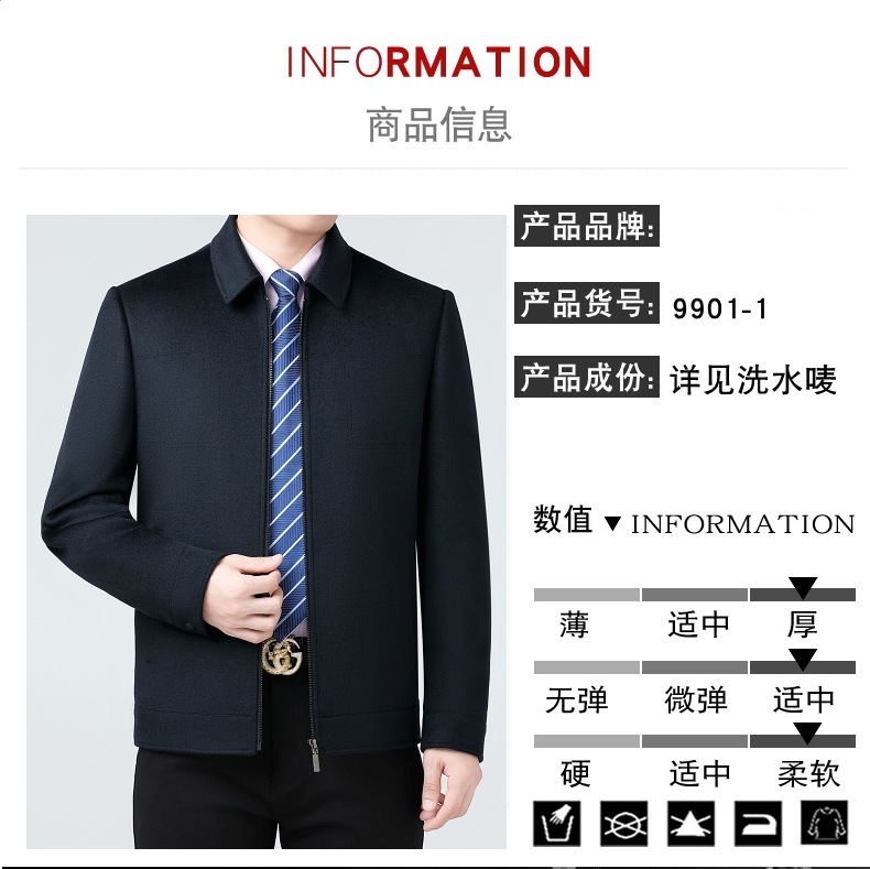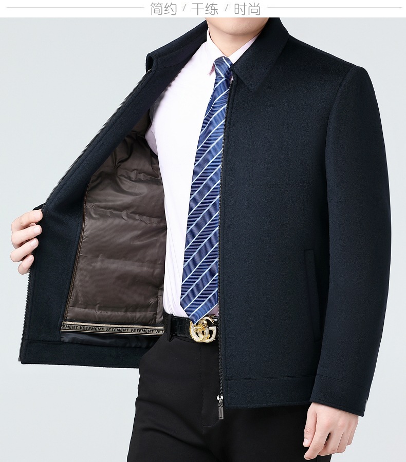 가벼운 럭셔리 브랜드 가을과 겨울 중년 아빠 남자 100 캐시미어 코트 비즈니스 다운 라이너 재킷 모직 재킷스토어 가기