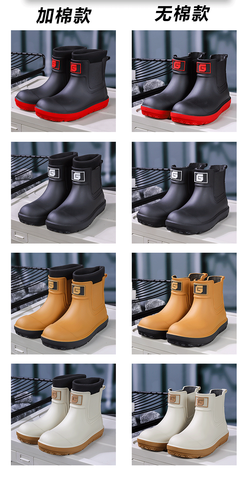 국경 간 커플 남성과 여성의 비 신발 야외 미끄럼 방지 고무 신발 내마모성 수화면 탈착식 따뜻한 재고스토어 가기