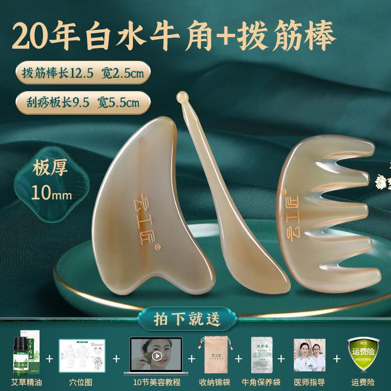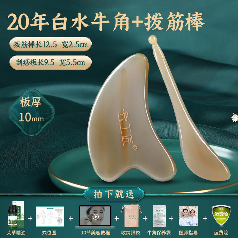 • 18년산 흰색 버팔로 힘줄 스틱 두께 8mm + 무료 5섹션 얼굴 긁기 튜토리얼
