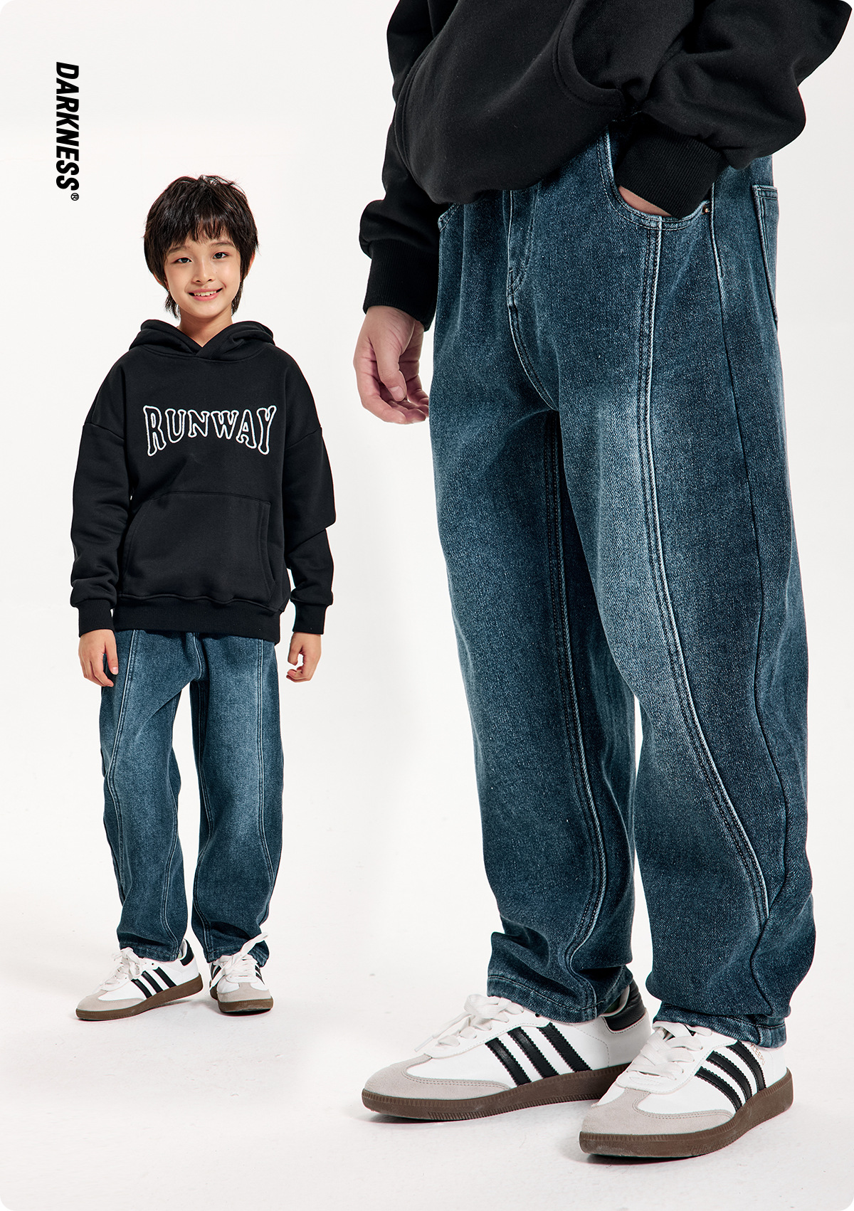 DK 아동복 2024 년 가을 소녀와 소년 원피스 벨벳 따뜻한 기모 청바지 어린이 한국 긴 바지스토어 가기