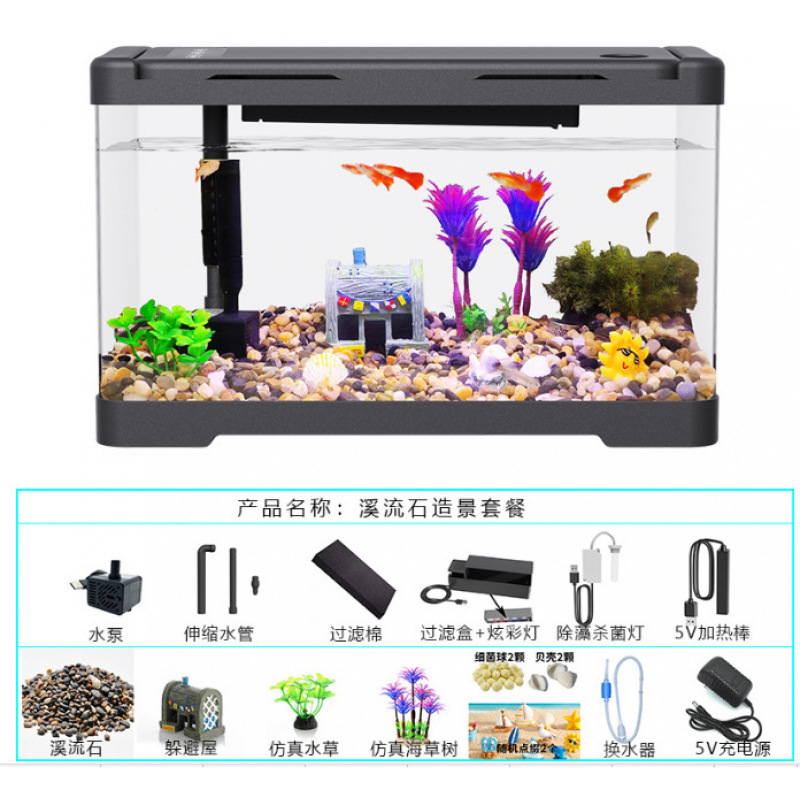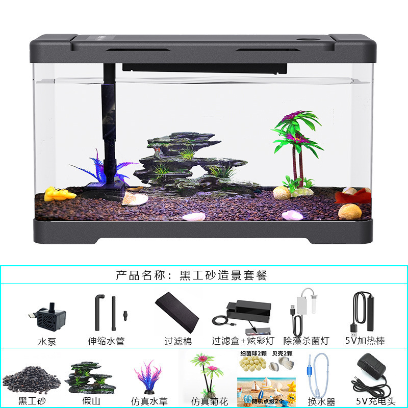 • 40 지능형 터치 탱크 [검은 모래 조경 + 조류 제거 램프 + 가열 막대 + 여과 및 산소화] 무료