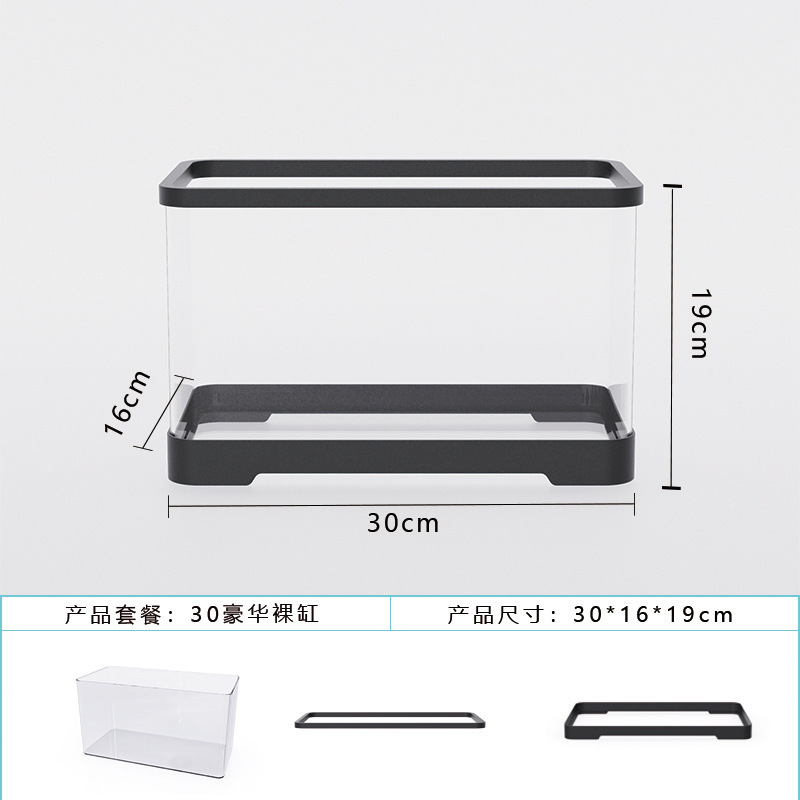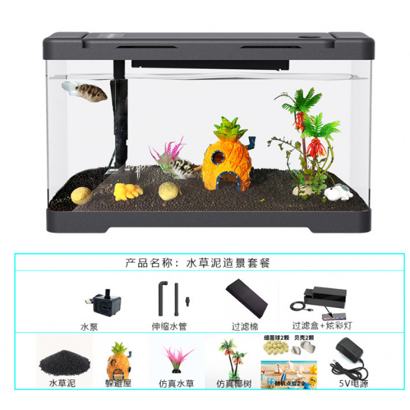 4 개의 초백색 생태 어항 거실 작은 아크릴 테이블 상단 탱크 순환 필터 거북이 탱크 조경 황금 바다의 전체 세트스토어 가기
