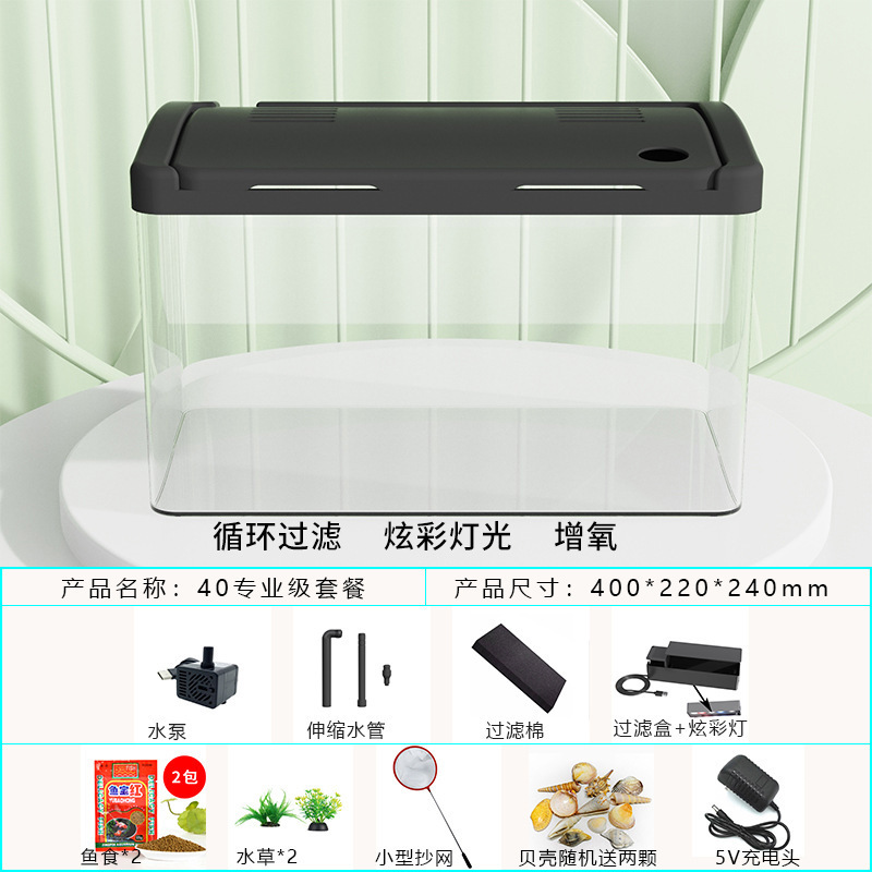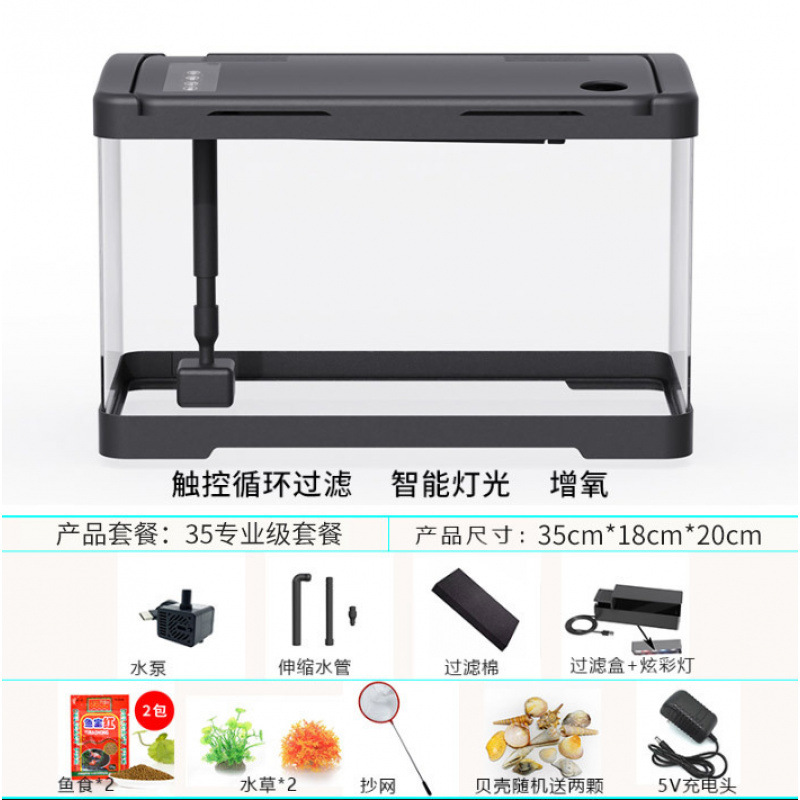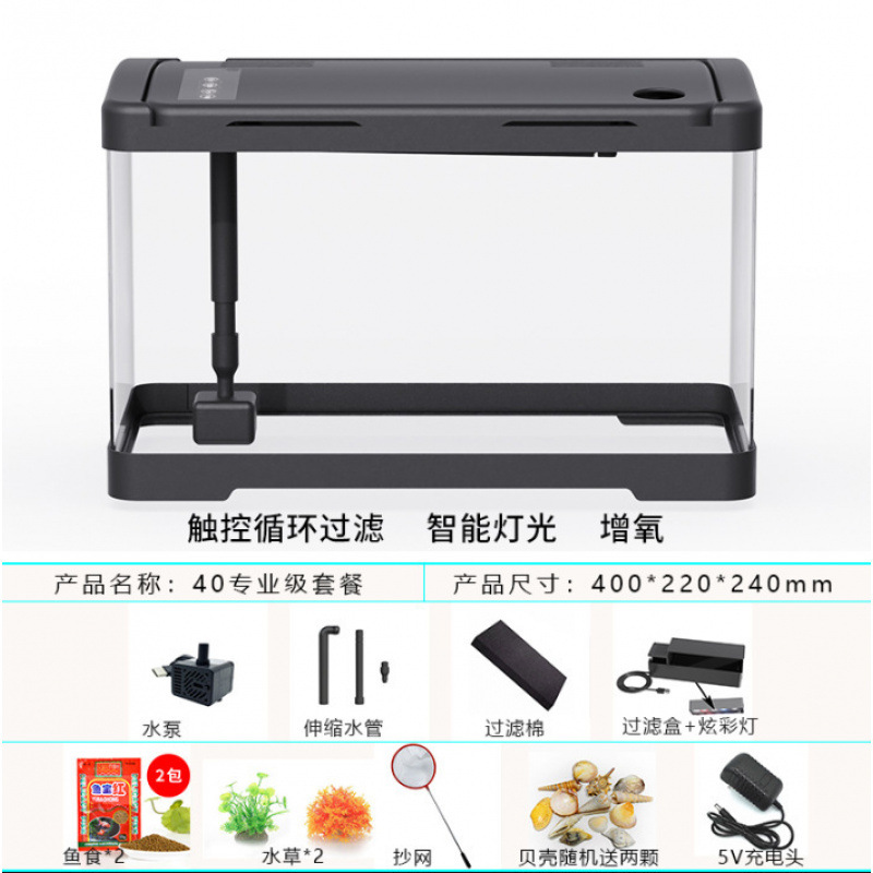 • 40 지능형 터치 탱크 [수생 식물 및 진흙 조경 + 조류 제거 램프 + 가열 막대 + 여과 및 산소화]