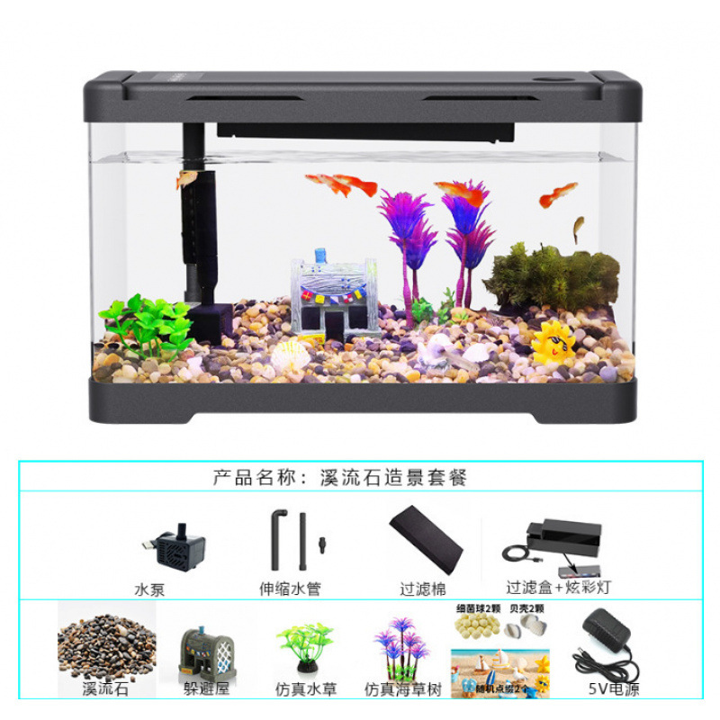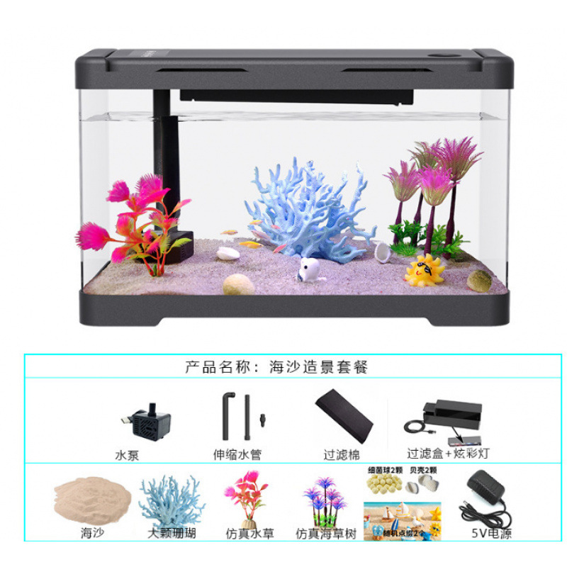 4 개의 초백색 생태 어항 거실 작은 아크릴 테이블 상단 탱크 순환 필터 거북이 탱크 조경 황금 바다의 전체 세트