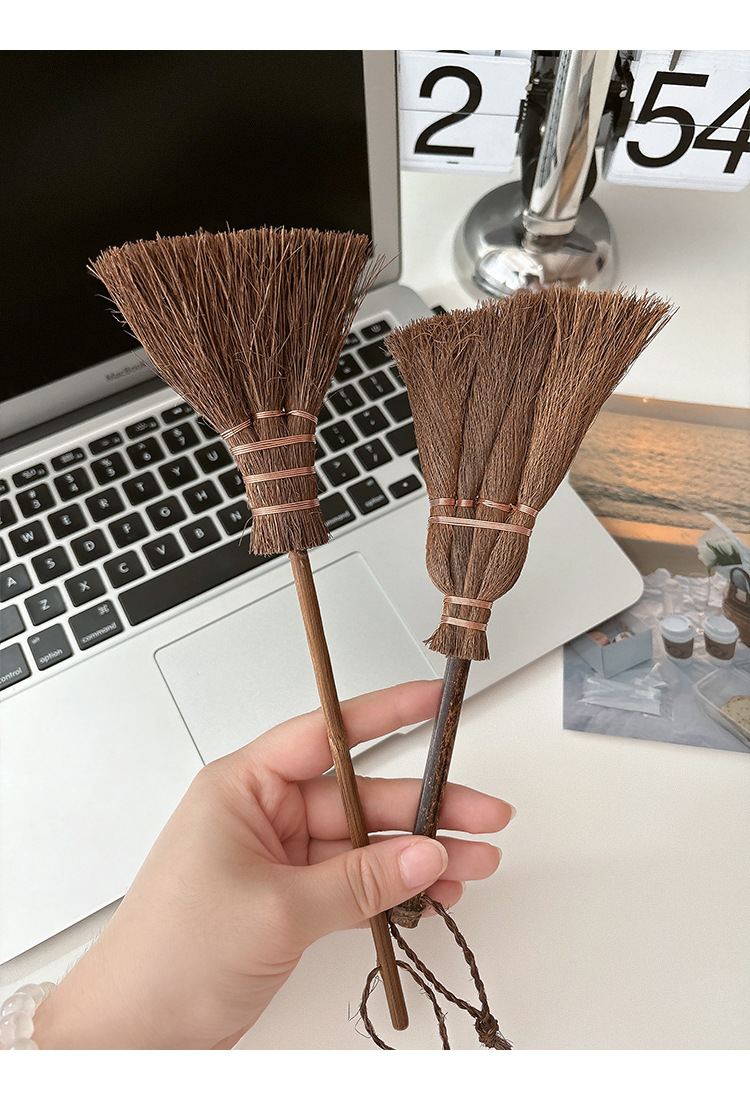데스크탑 빗자루 미니 소형 휴대용 빗자루 키보드 청소 유물 다크 브라운 머리 창조적 인 펜던트 갭 청소 브러시스토어 가기