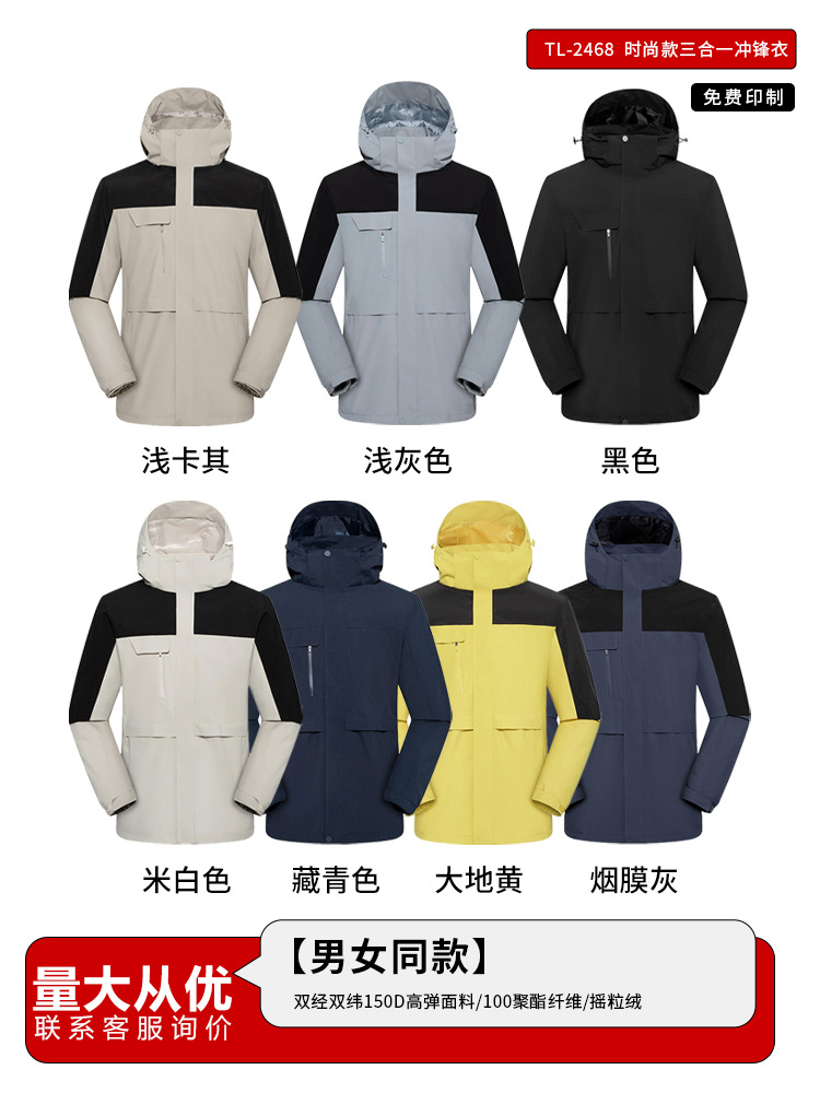 충전 의류 인쇄 로고 3 대 1 반팔 작업복 방풍 및 방수 작업복 코트 겨울
