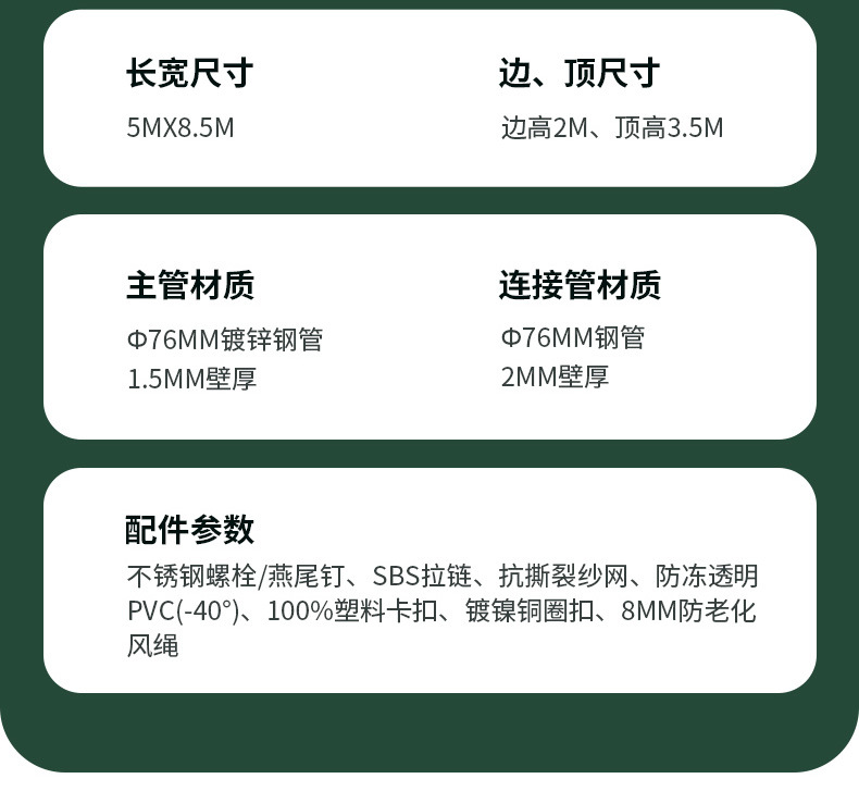 • 길이 6m * 너비 4m (골격용 48 원형 튜브)