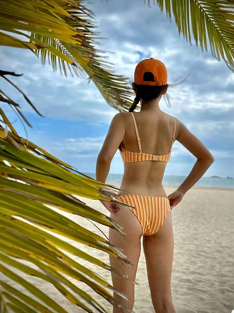 코크스 연어 섬 휴일 서핑 영화 한국 비키니 섹시한 줄무늬 오렌지 비키니 여성스토어 가기
