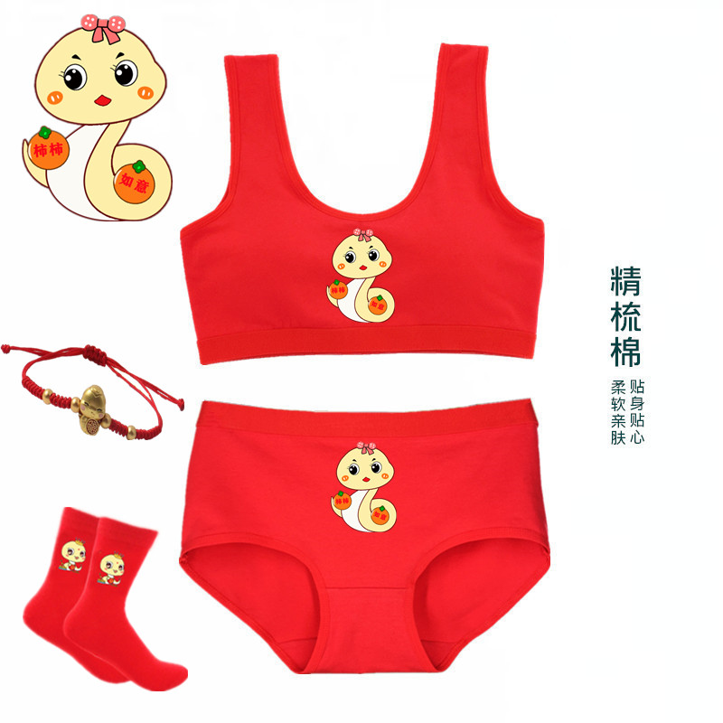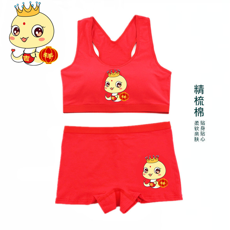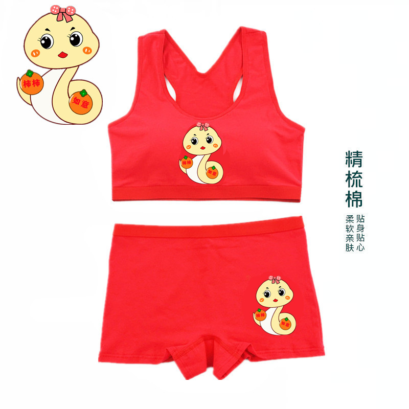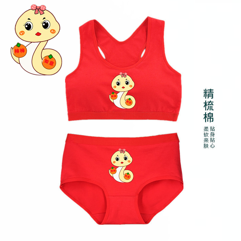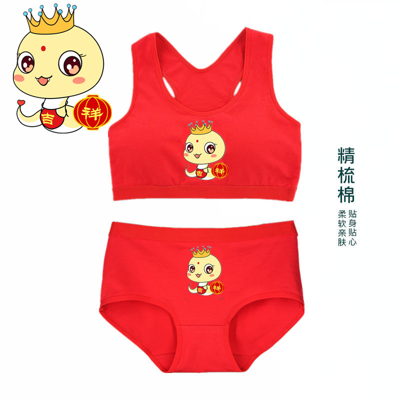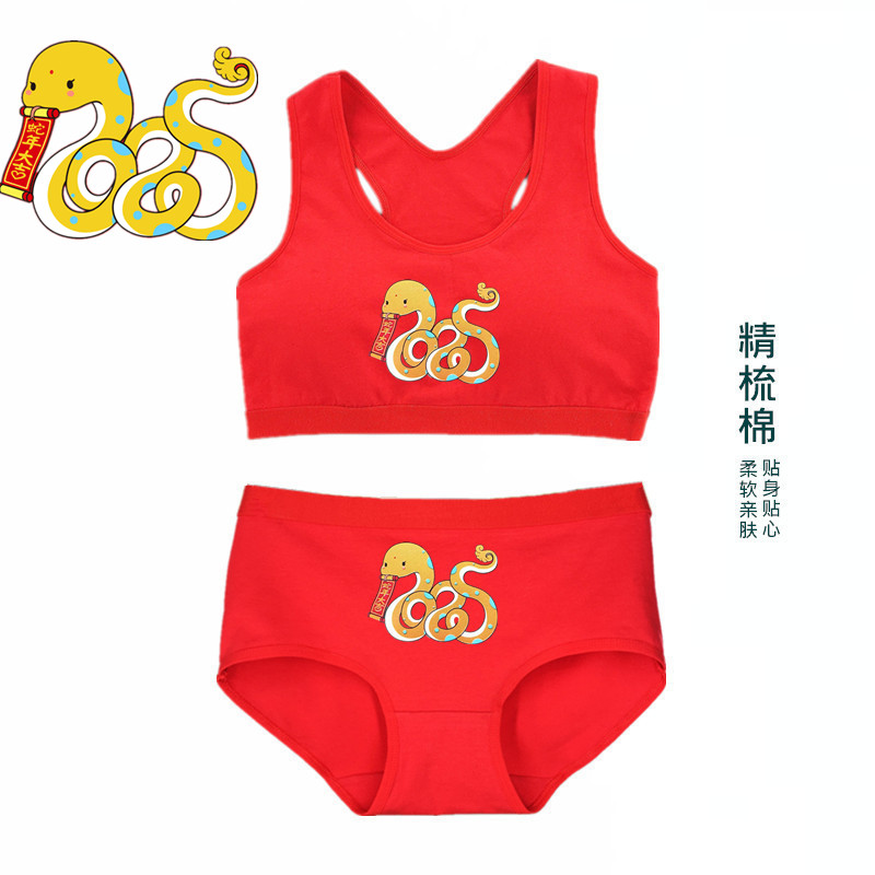 뱀의 해 세트 어린 이용 개발 기간 13 순면 속옷 및 속옷 소녀를위한 연봉 빅 레드 조끼 브래지어