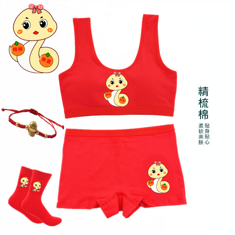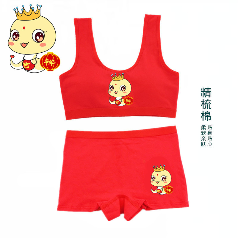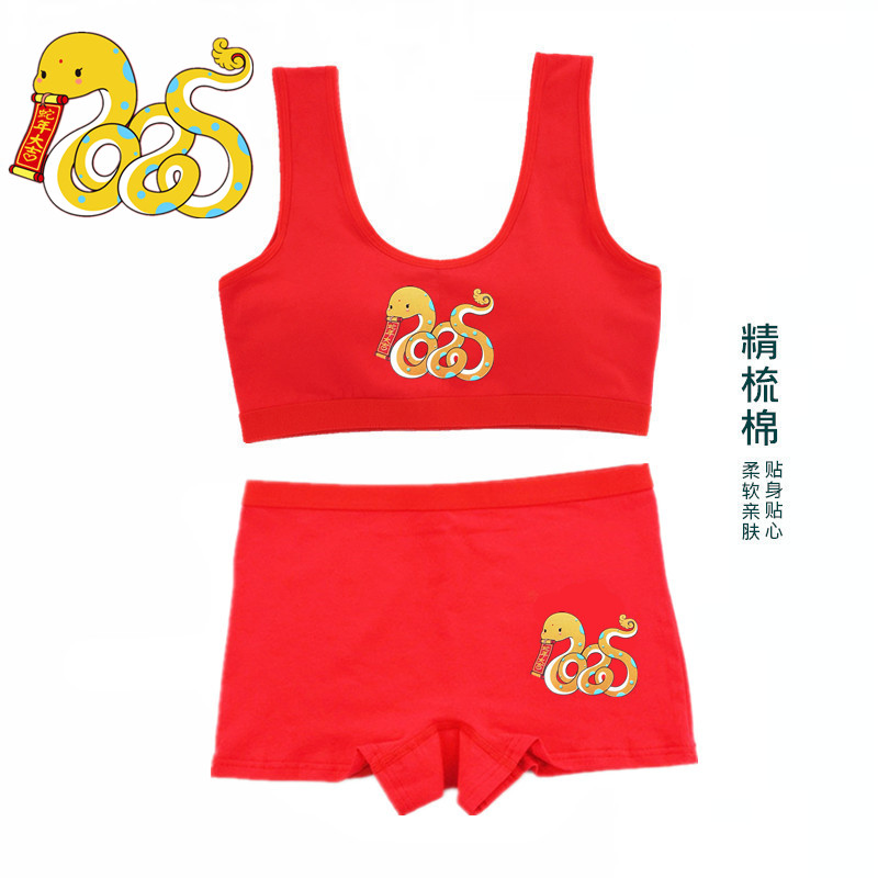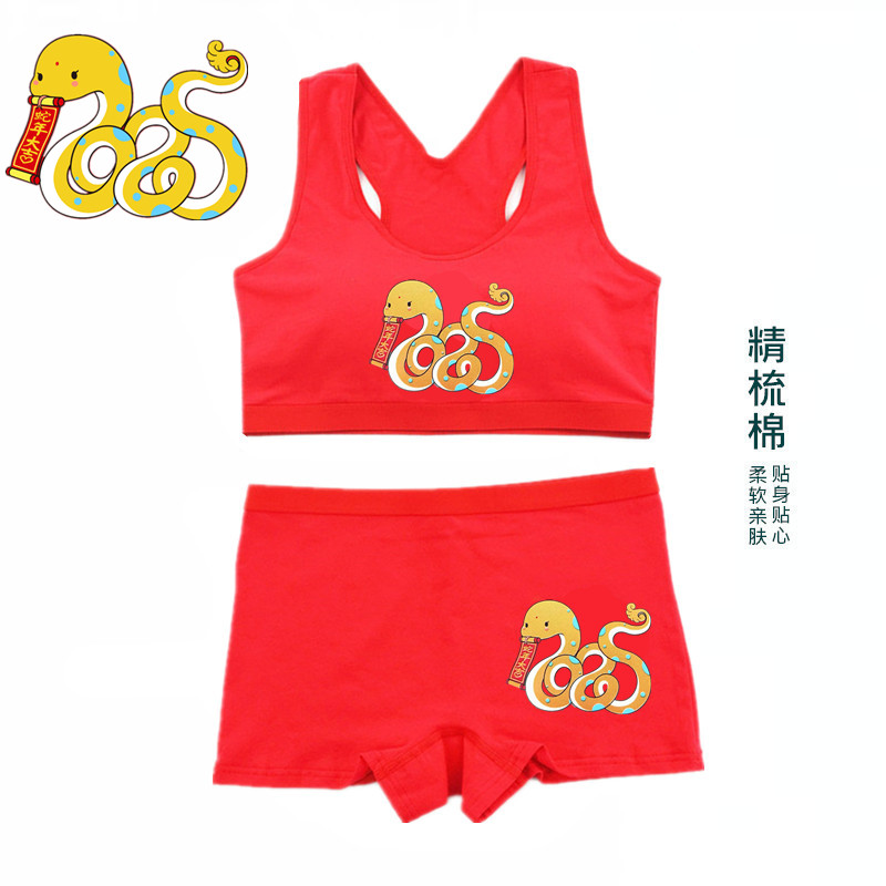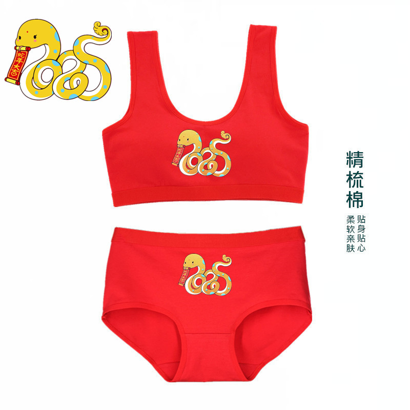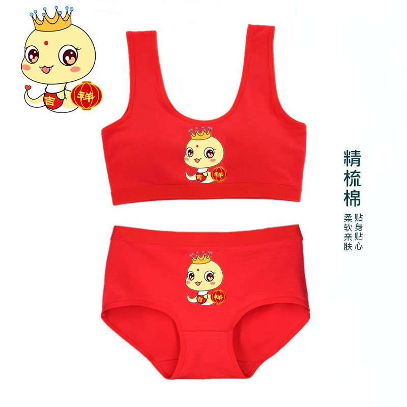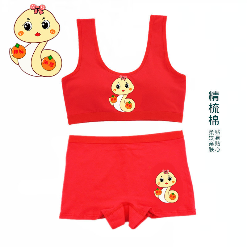 뱀의 해 세트 어린 이용 개발 기간 13 순면 속옷 및 속옷 소녀를위한 연봉 빅 레드 조끼 브래지어