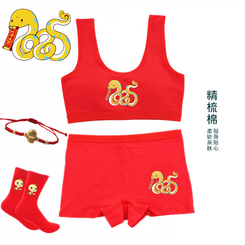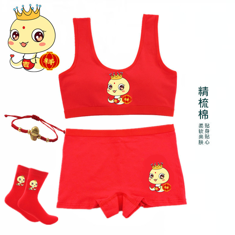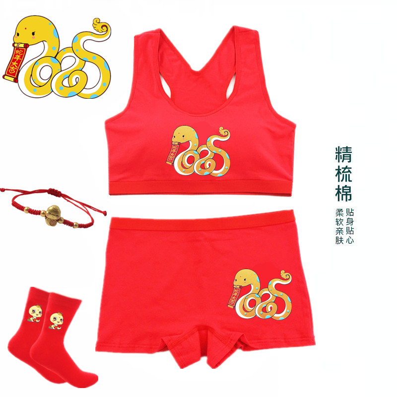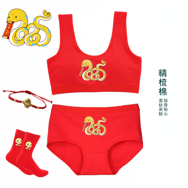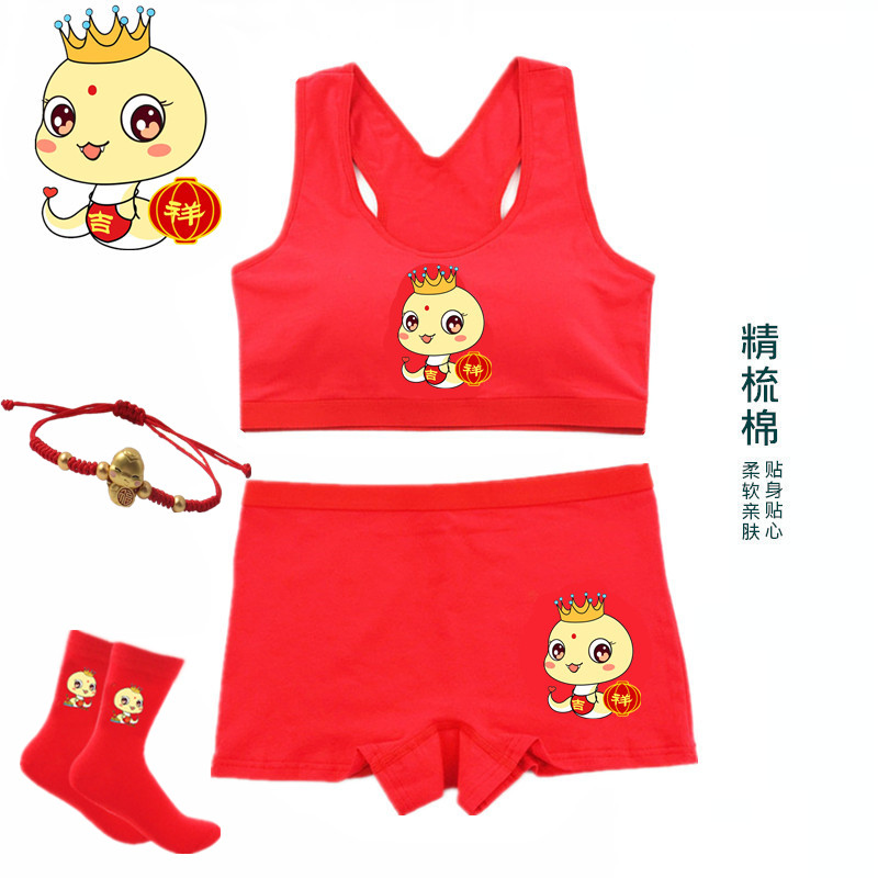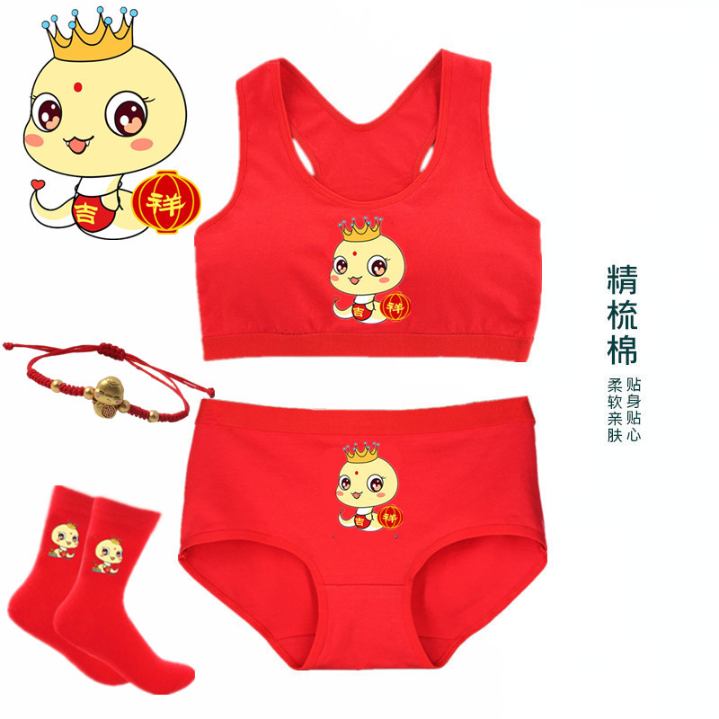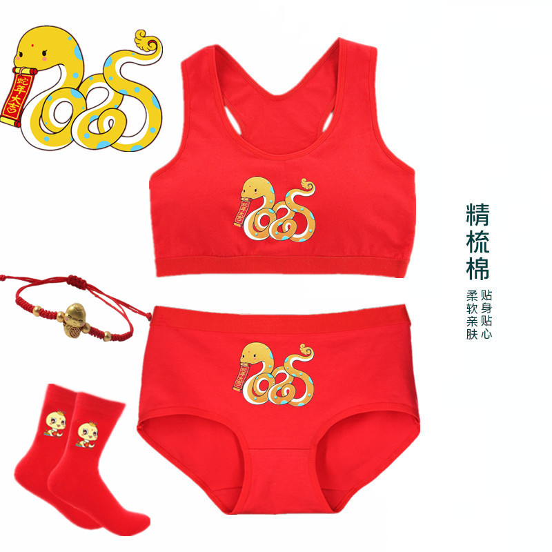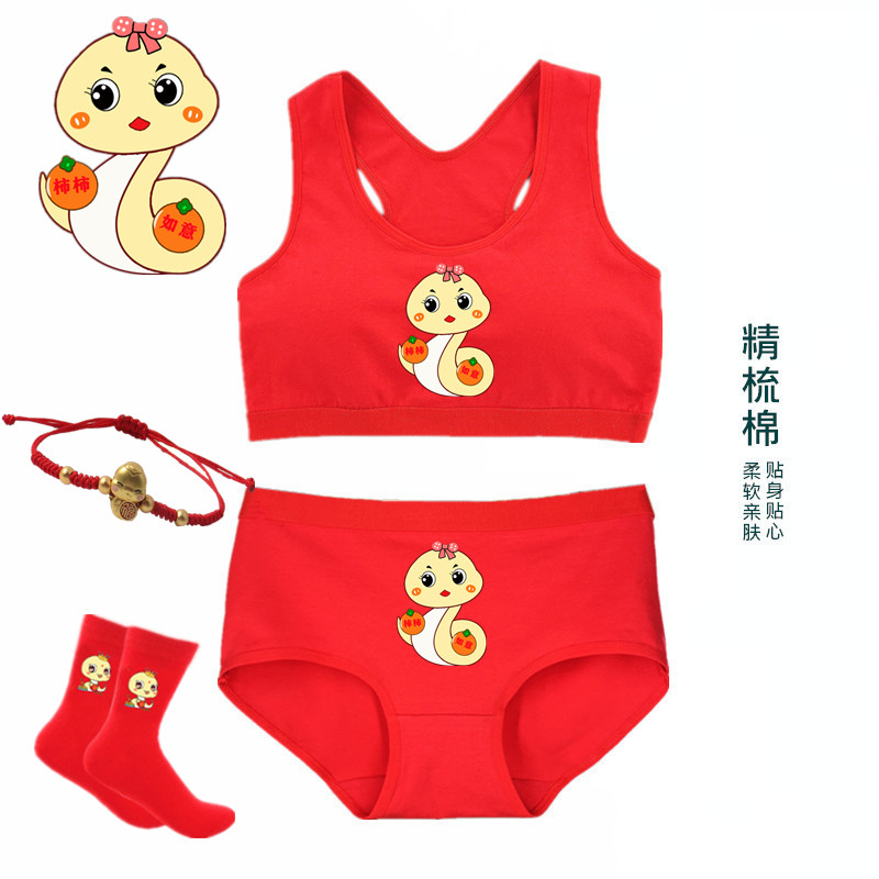 뱀의 해 세트 어린 이용 개발 기간 13 순면 속옷 및 속옷 소녀를위한 연봉 빅 레드 조끼 브래지어스토어 가기