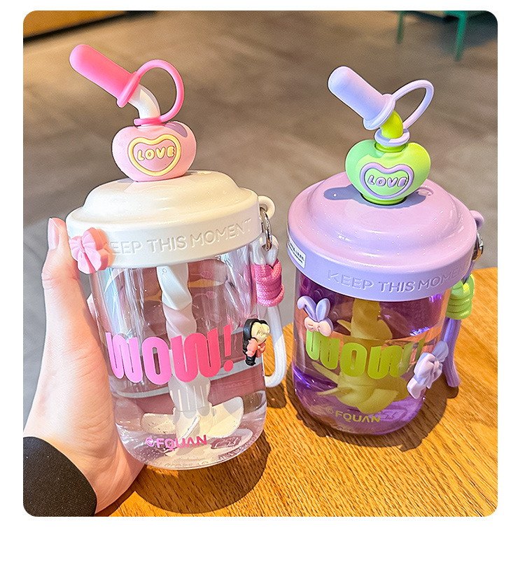 혼합 컵 귀여운 여성의 새로운 2024 높은 색상 값 플라스틱 물 컵 밀짚 작은 성격 휴대용 학생 Hua Geng