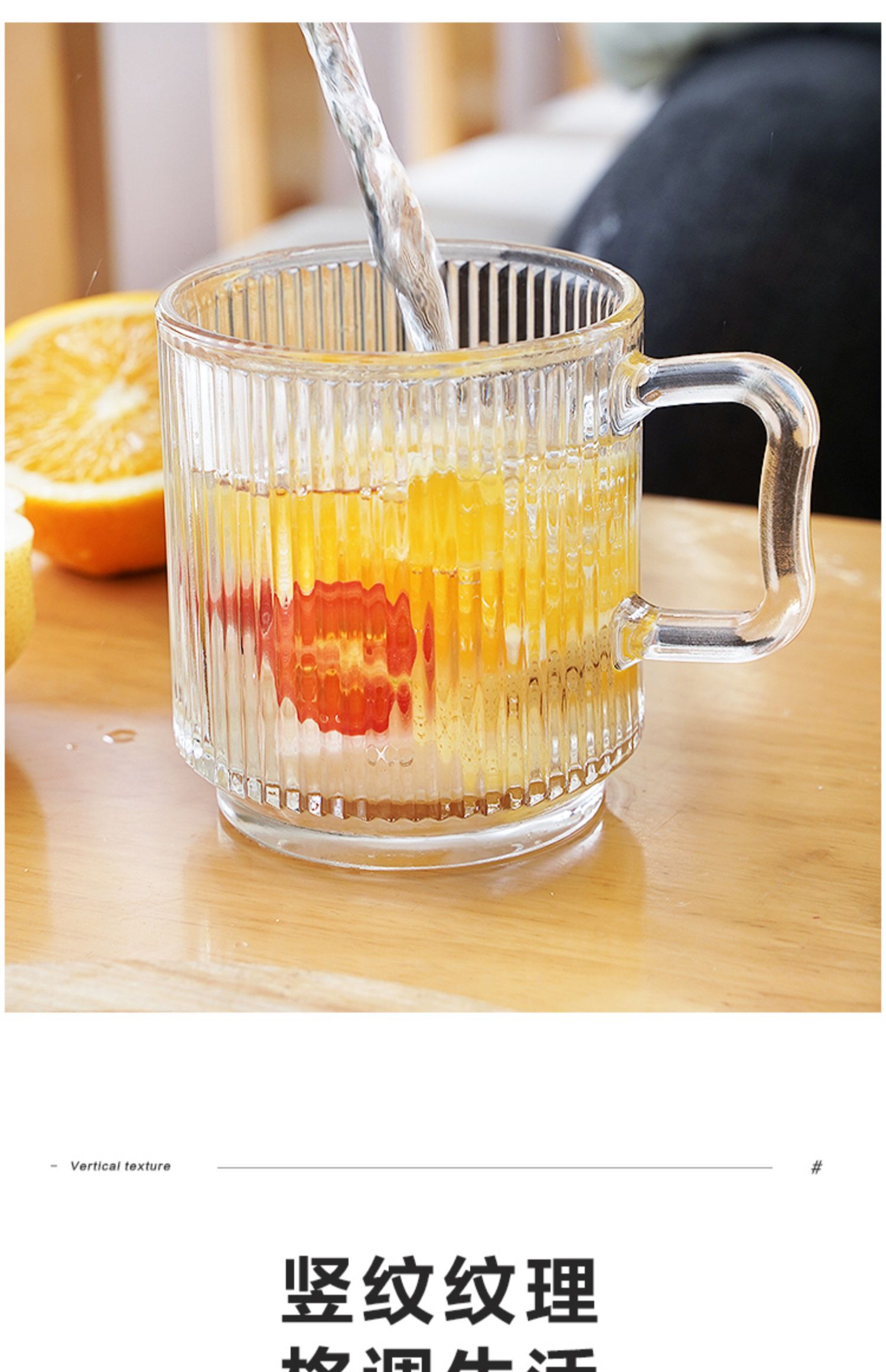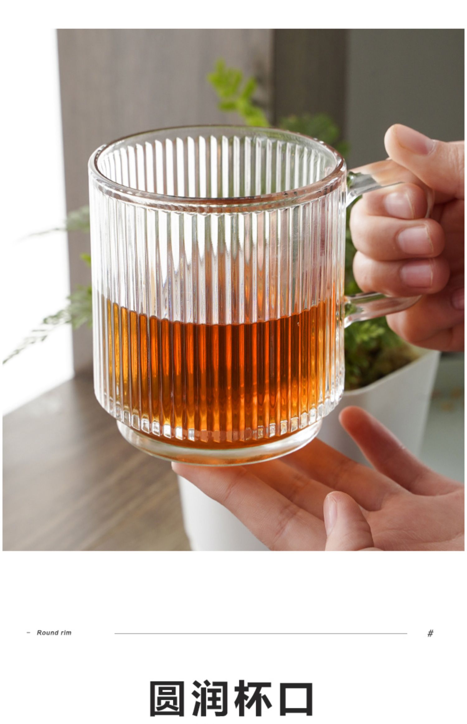 • 뚜껑 없는 세로 줄무늬 손잡이 컵 1개입☆