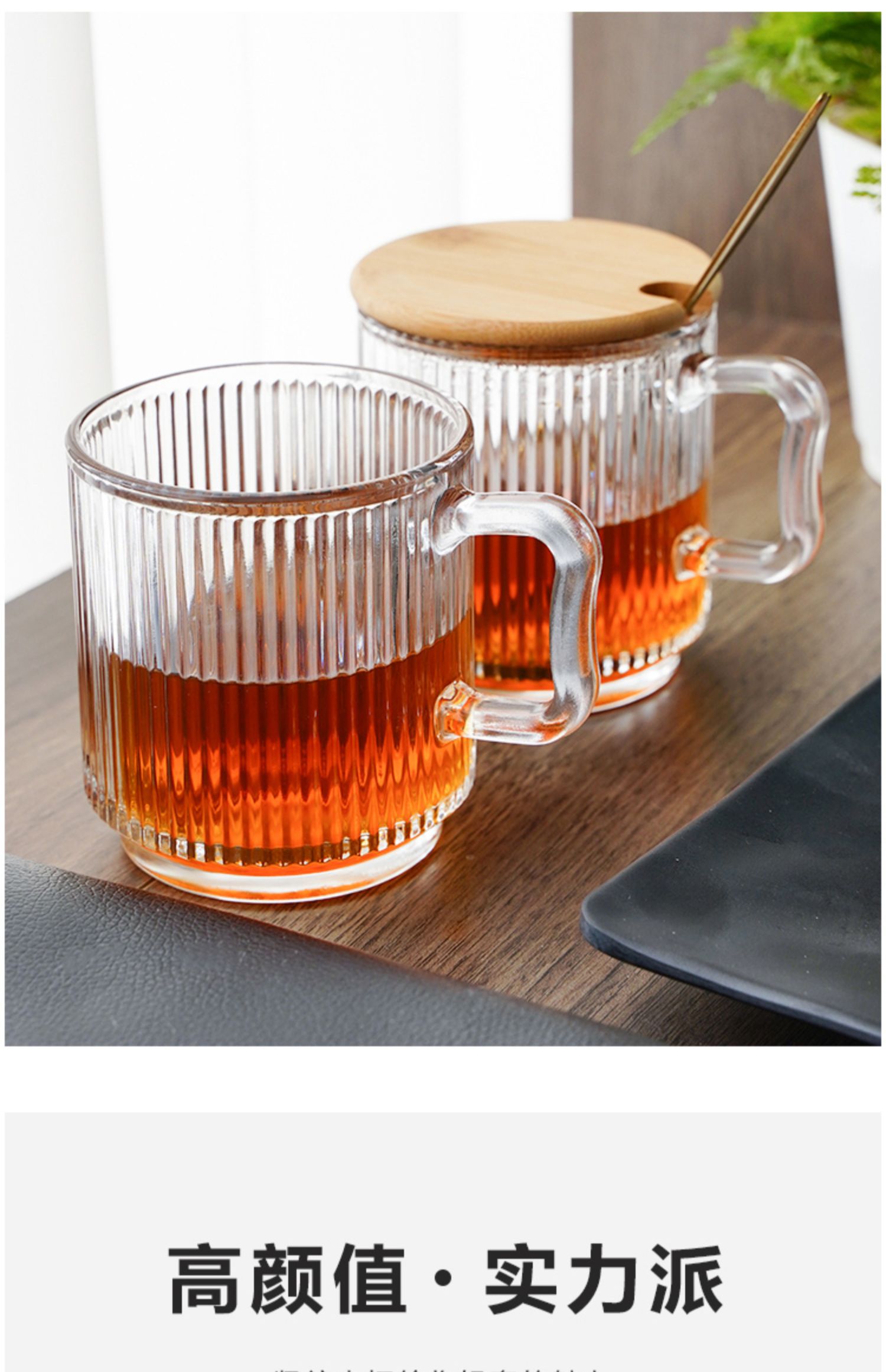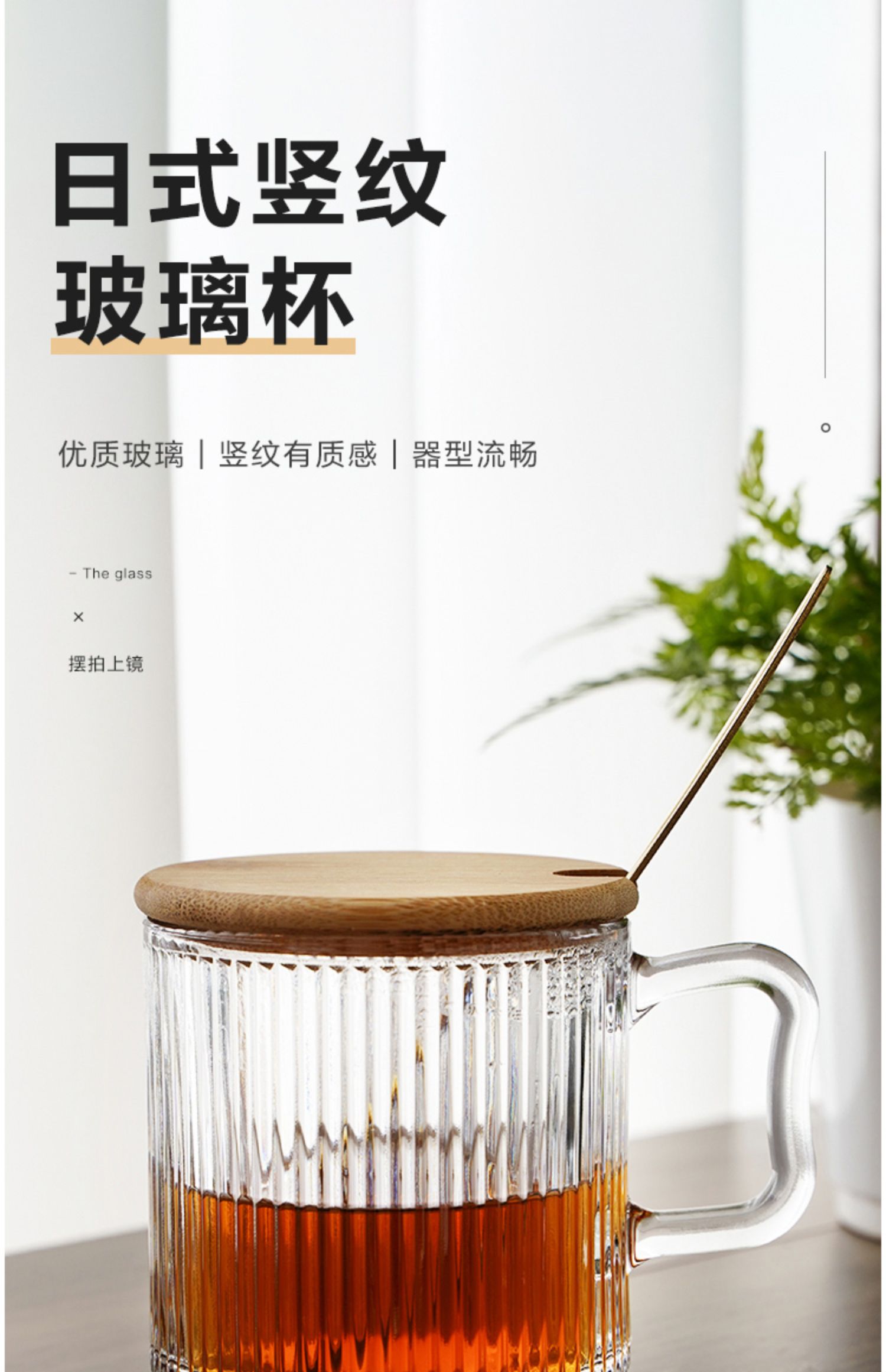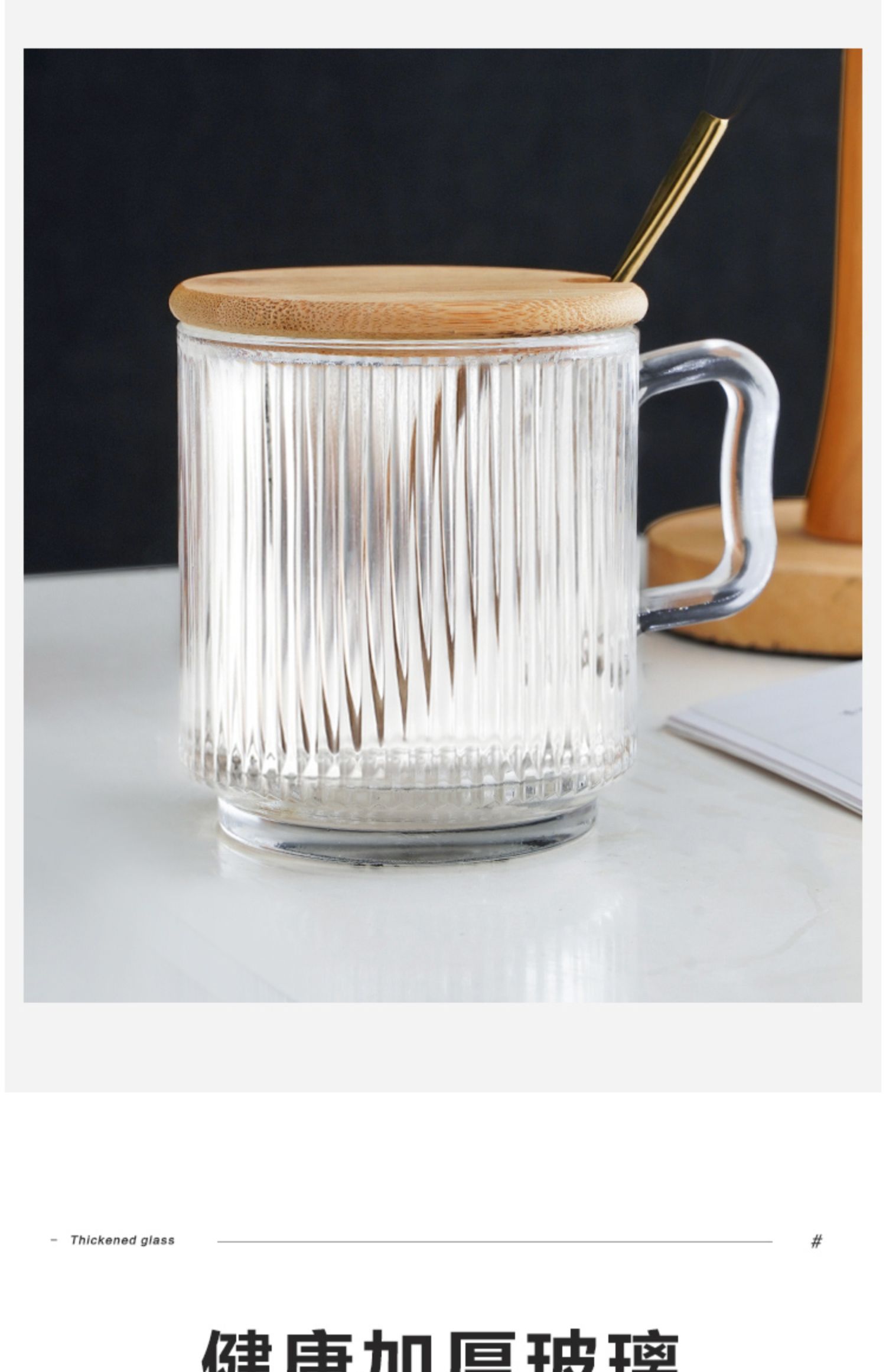 • 뚜껑 없는 세로 줄무늬 손잡이 컵 + 스푼 1개입☆
