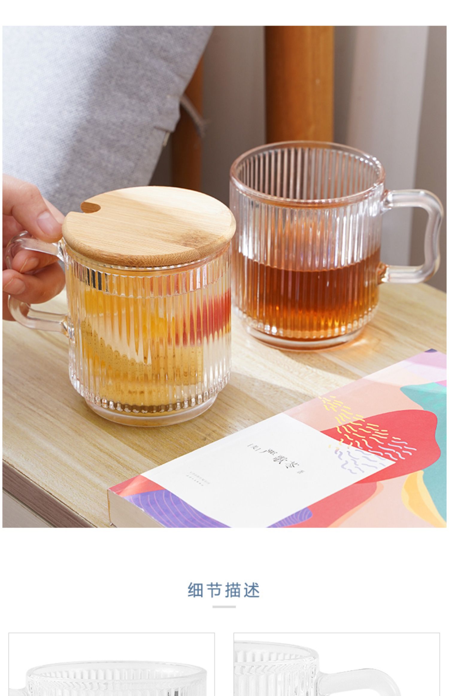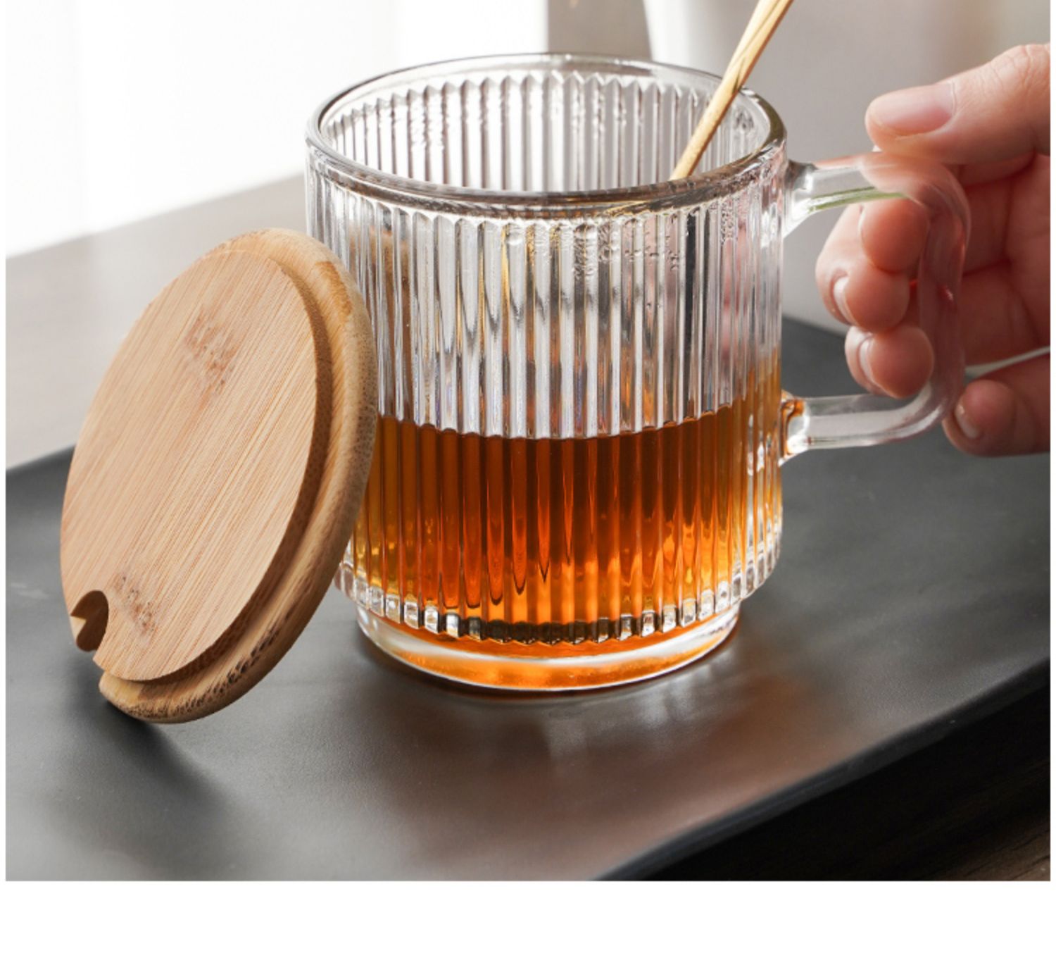• 뚜껑이 있는 수직 패턴 손잡이 컵 1개 ☆