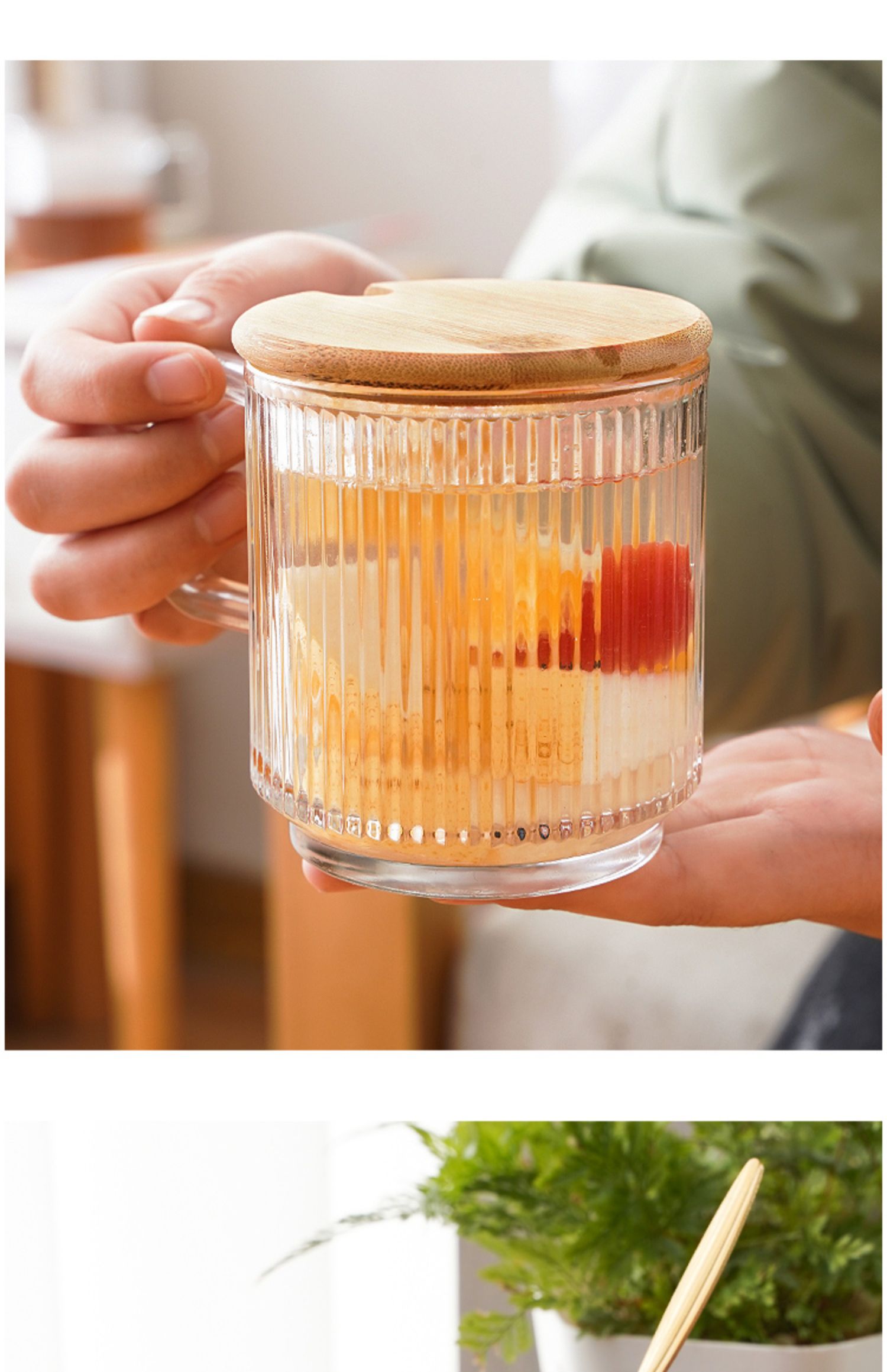 • 뚜껑이 있는 수직 패턴 컵과 스푼, 1개☆