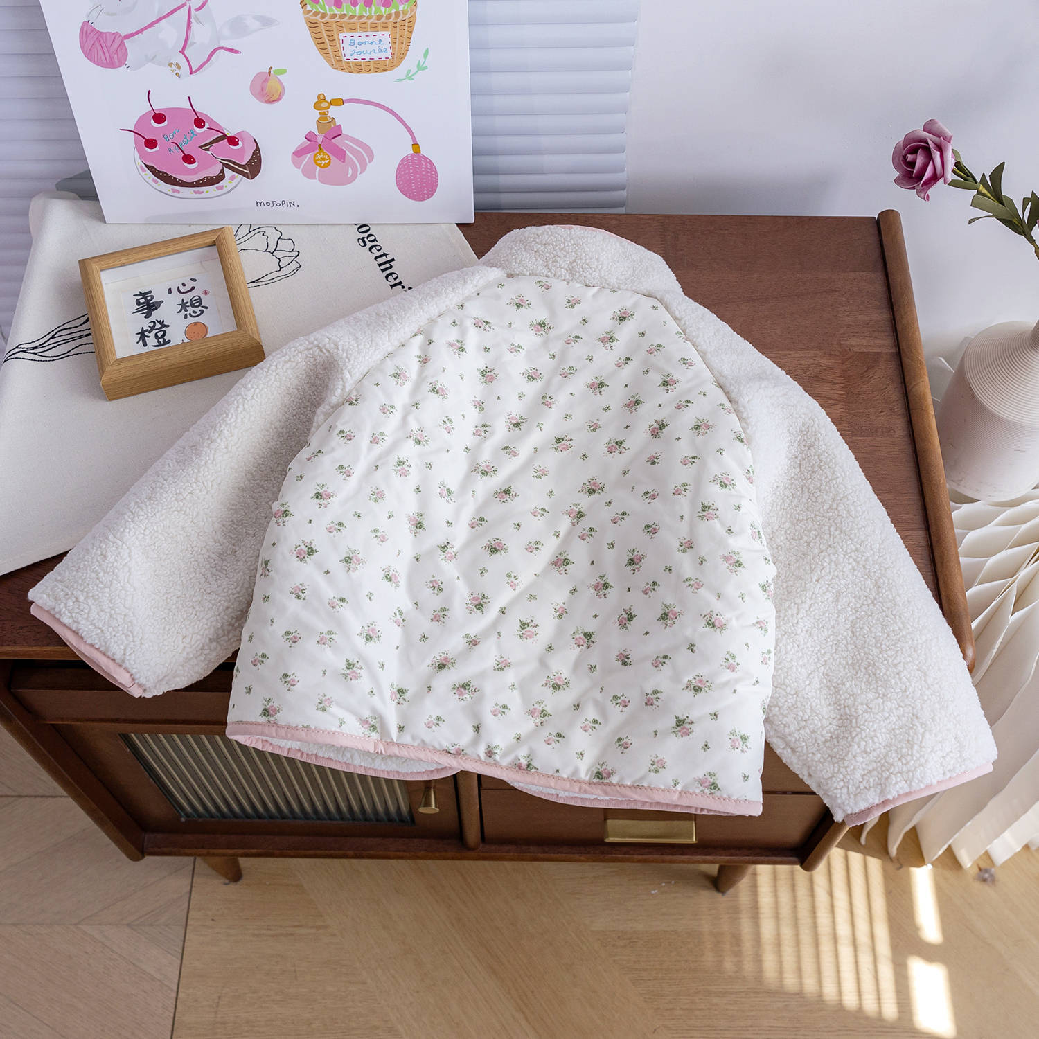 2025 겨울 소녀 벨벳 두꺼운 사랑 포켓 꽃 면화 재킷 아기 소녀 양면 벨벳 따뜻한 면화 재킷스토어 가기