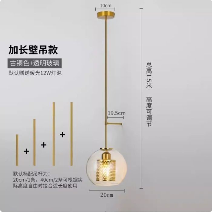• A5 행잉 벽 램프 투명 청동 개방형