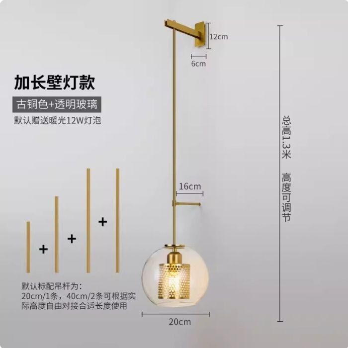 • A5 긴 투명 청동 벽 램프 개방형