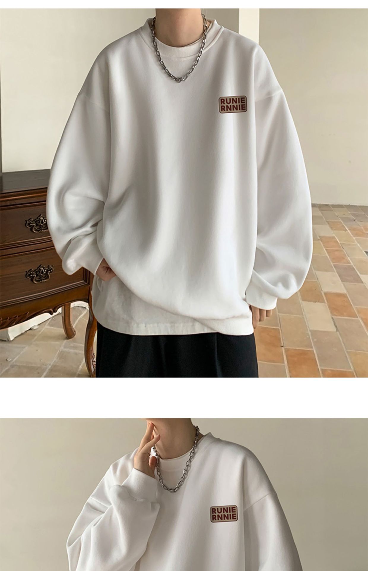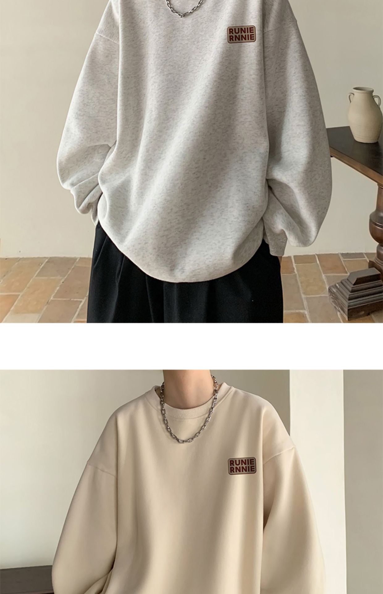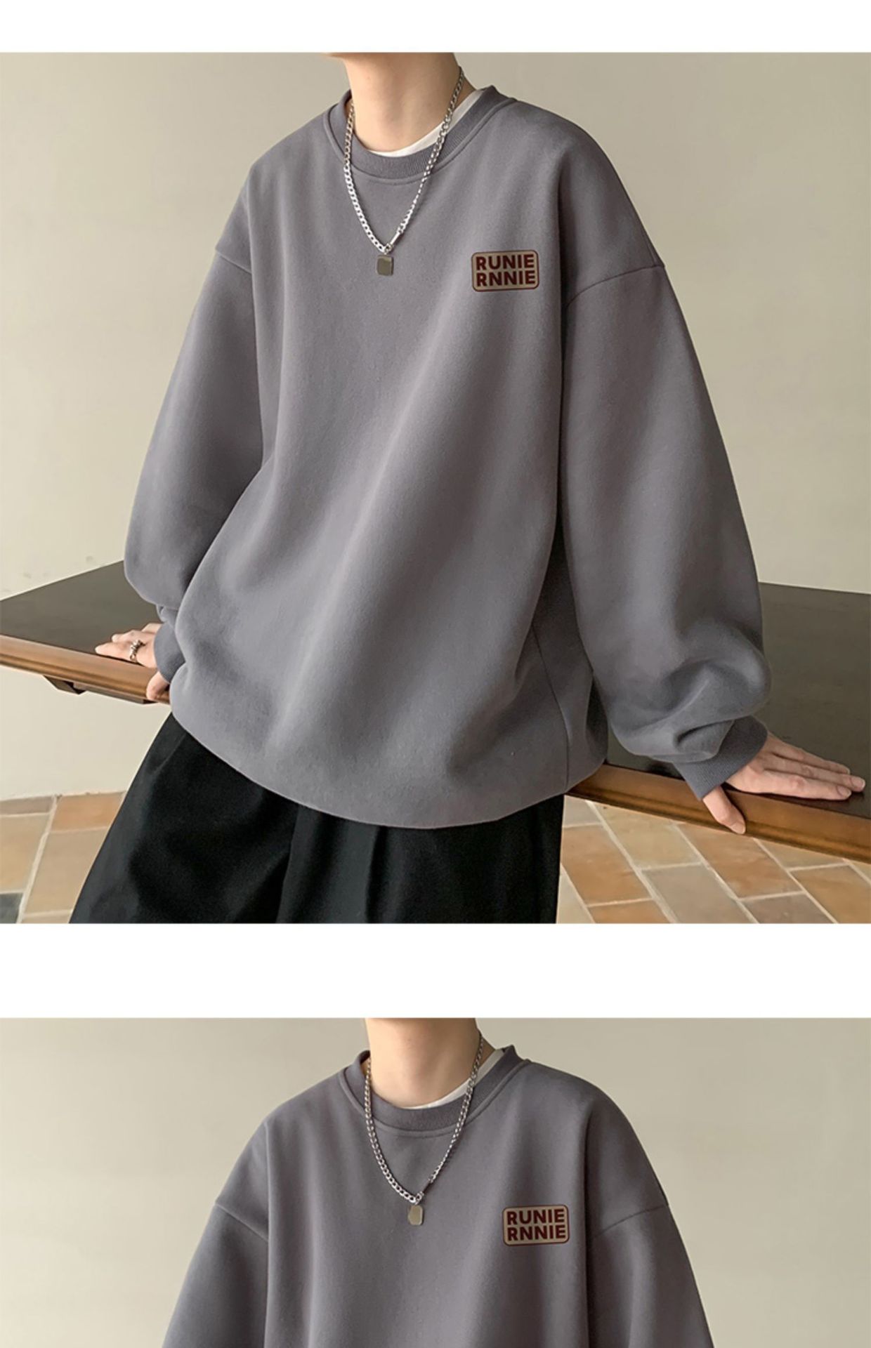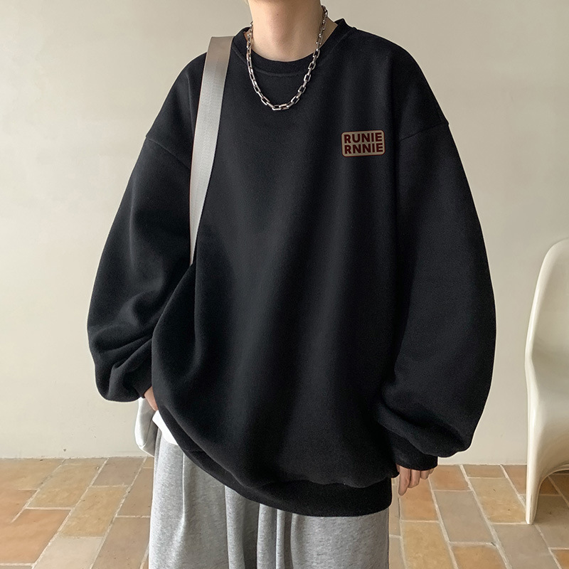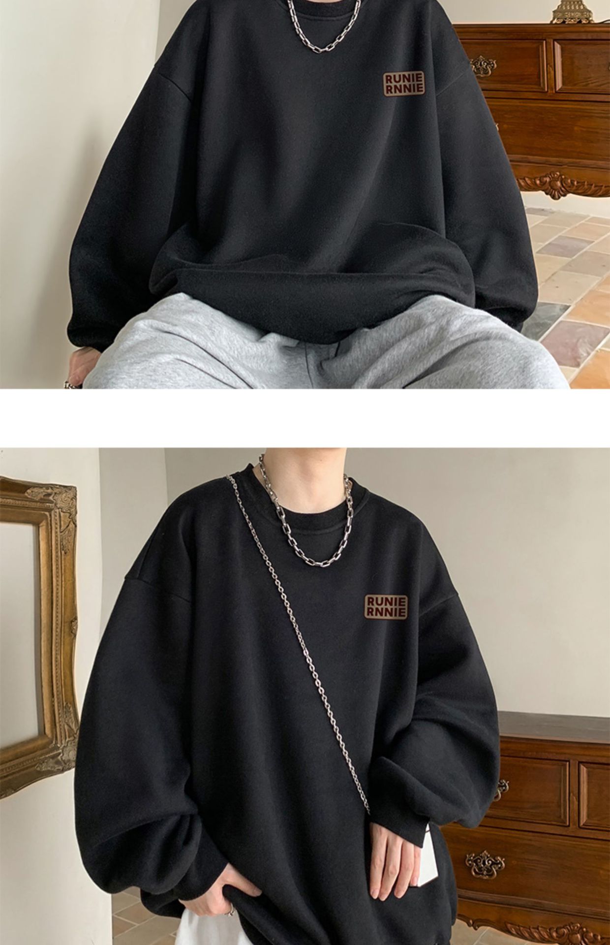 블랙 크루 넥 긴팔 티셔츠 남자 가을 2024 새로운 패션 브랜드 느슨한 플러스 사이즈 불끈한 소년 재킷 스웨트 셔츠스토어 가기