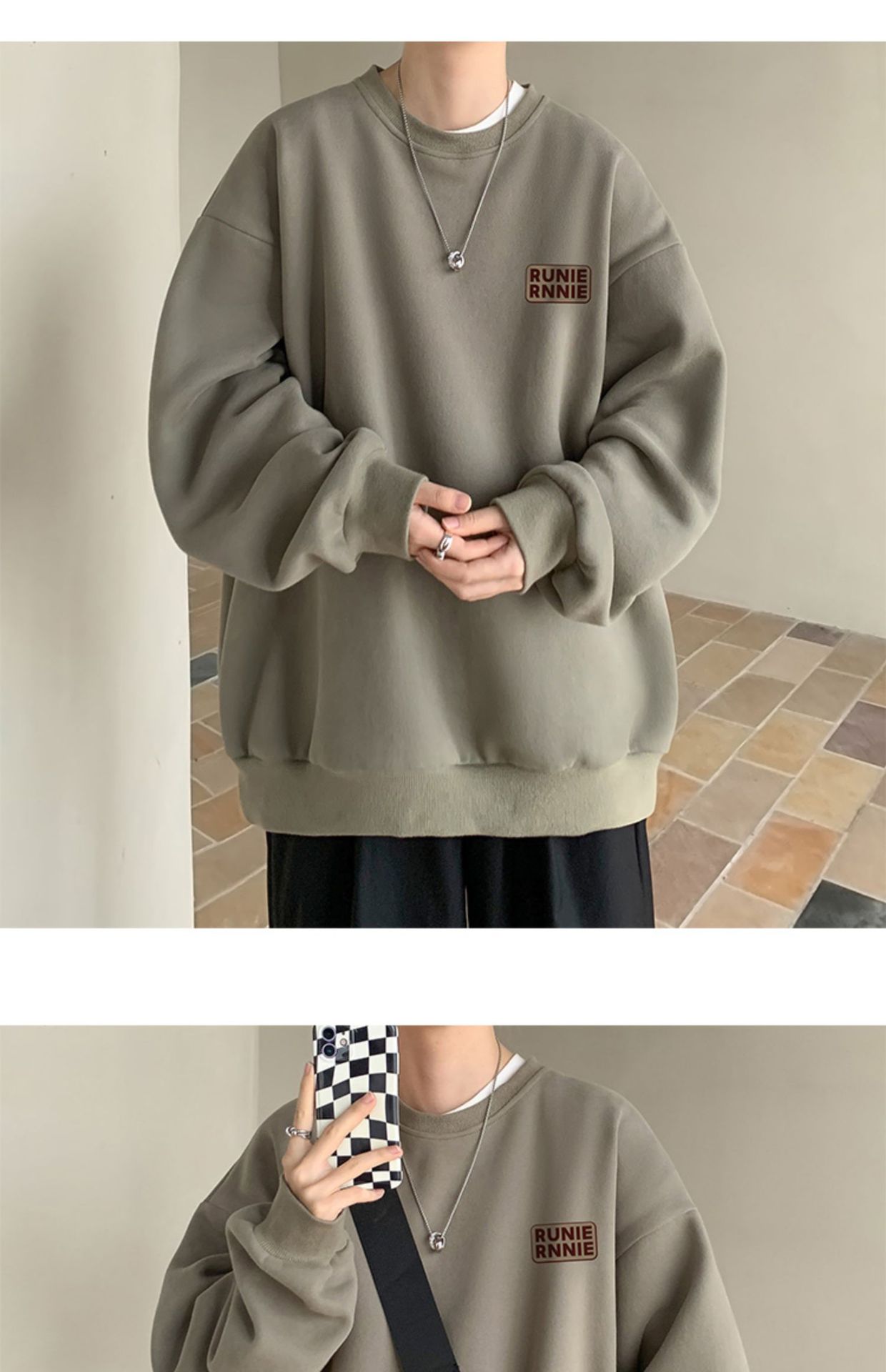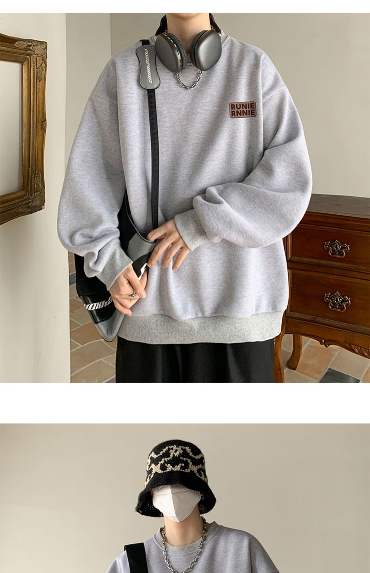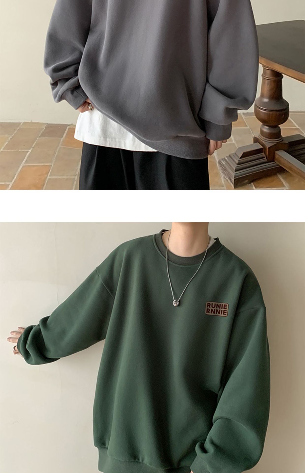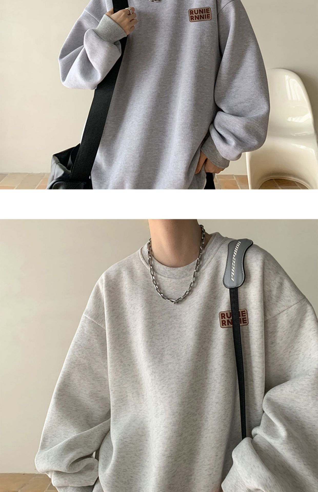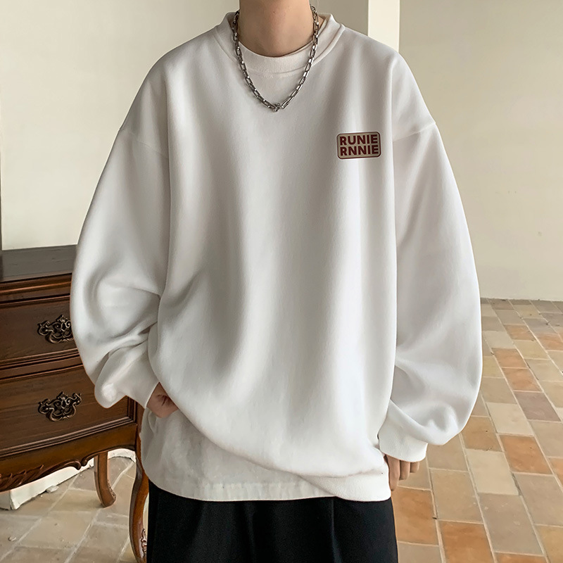블랙 크루 넥 긴팔 티셔츠 남자 가을 2024 새로운 패션 브랜드 느슨한 플러스 사이즈 불끈한 소년 재킷 스웨트 셔츠스토어 가기