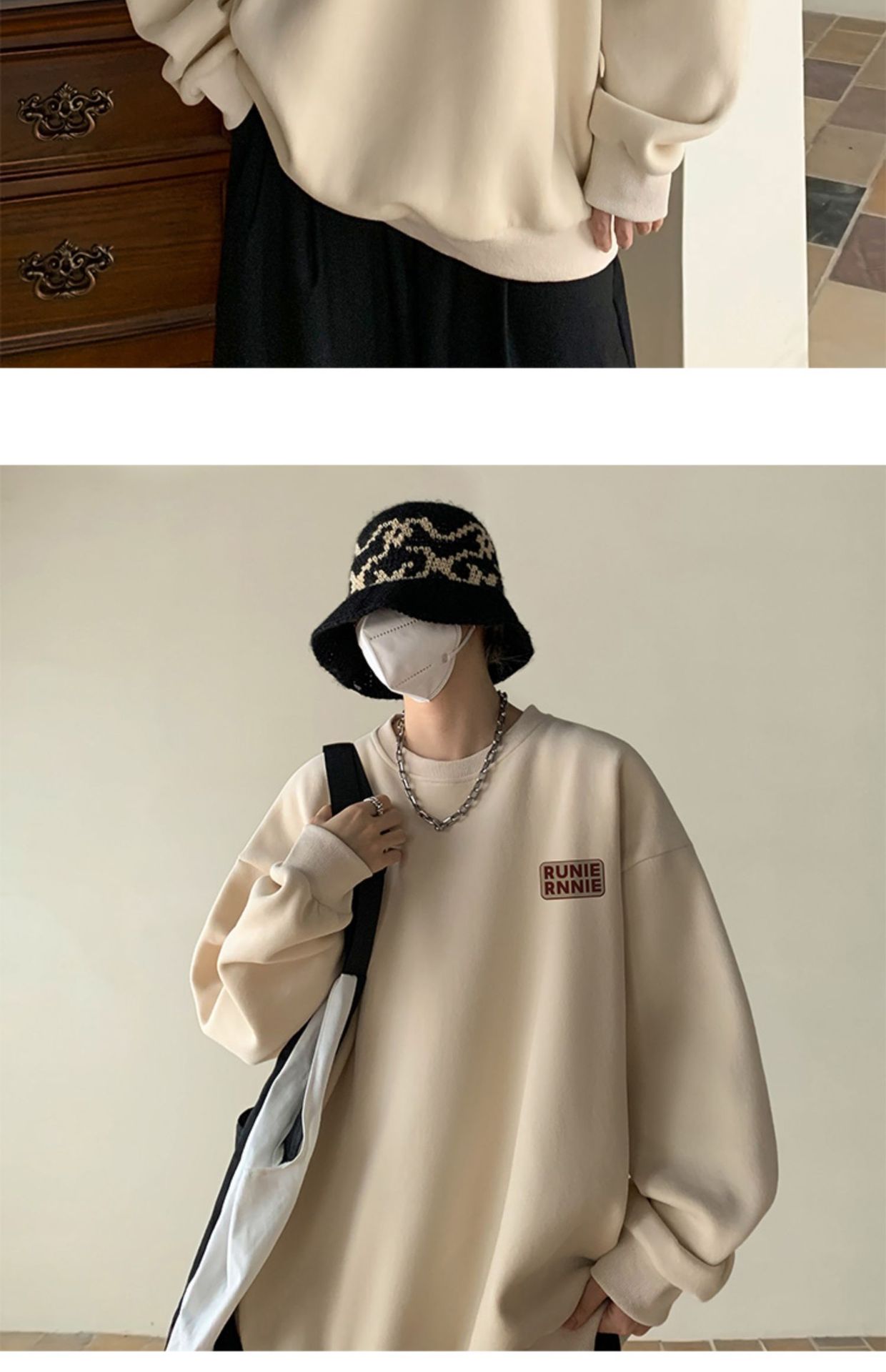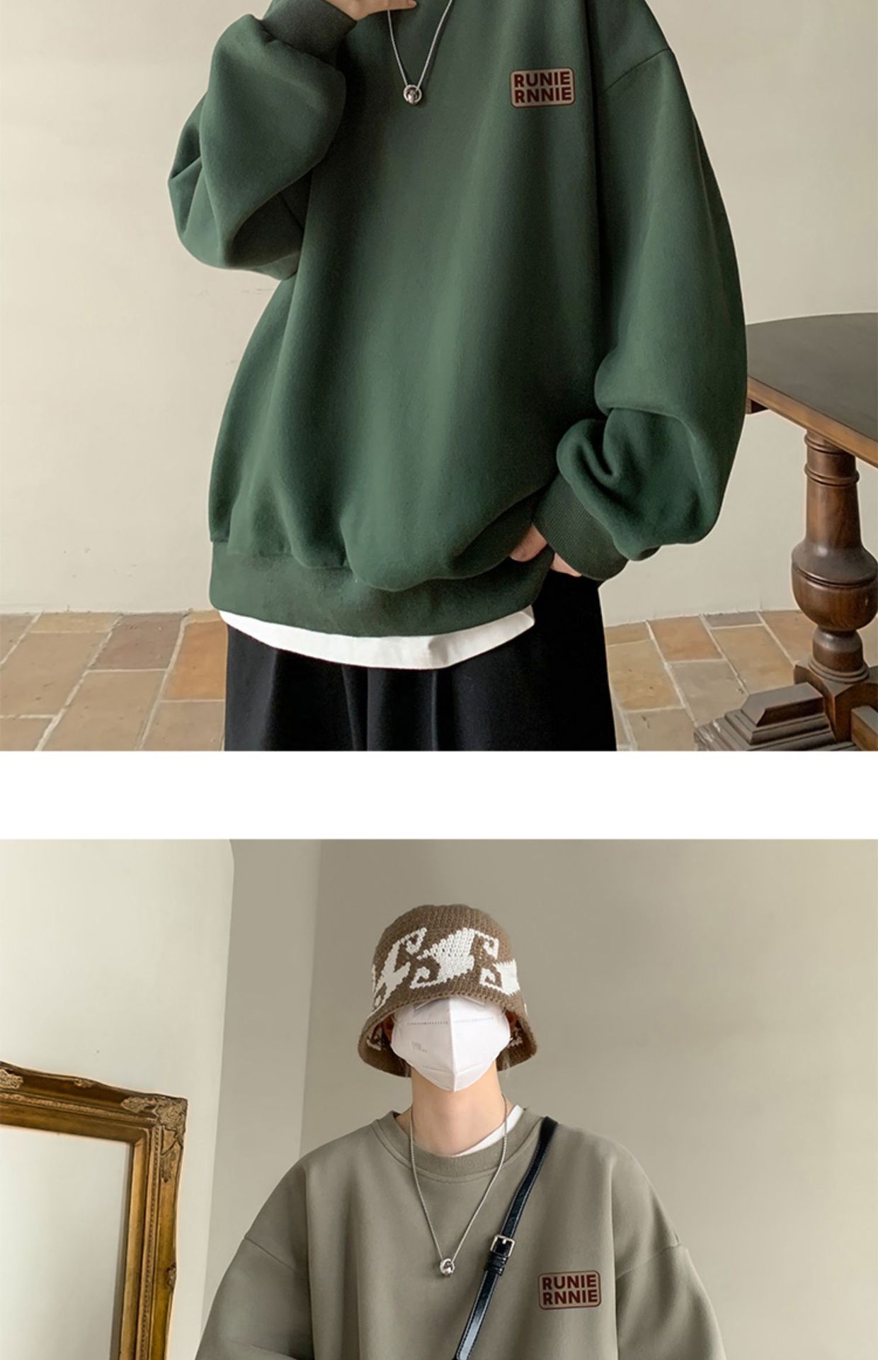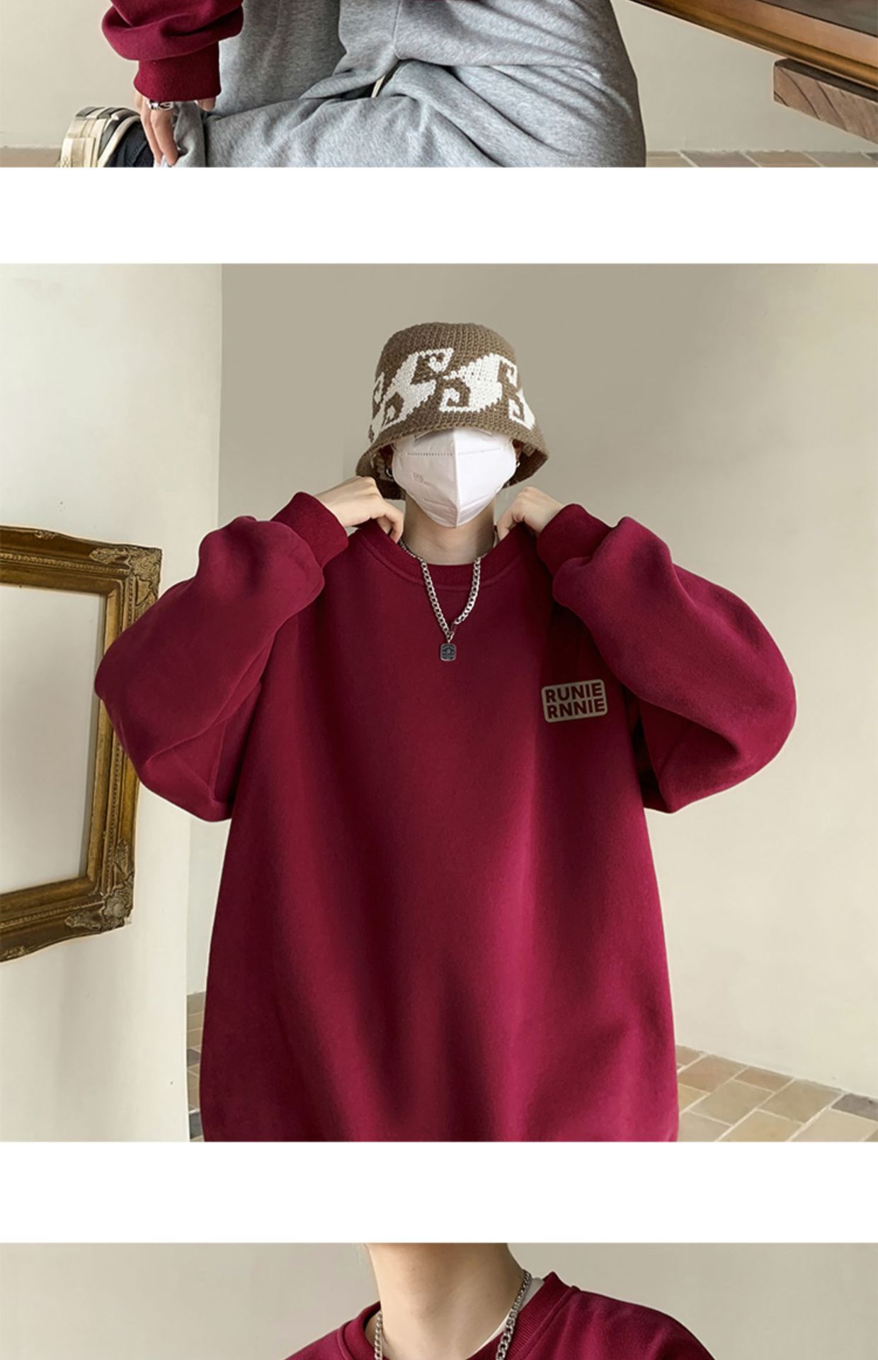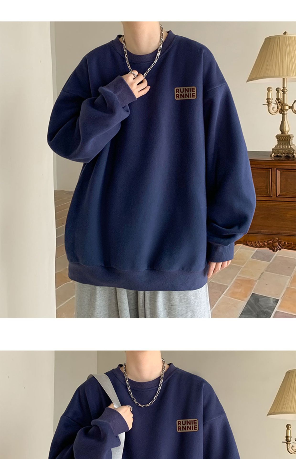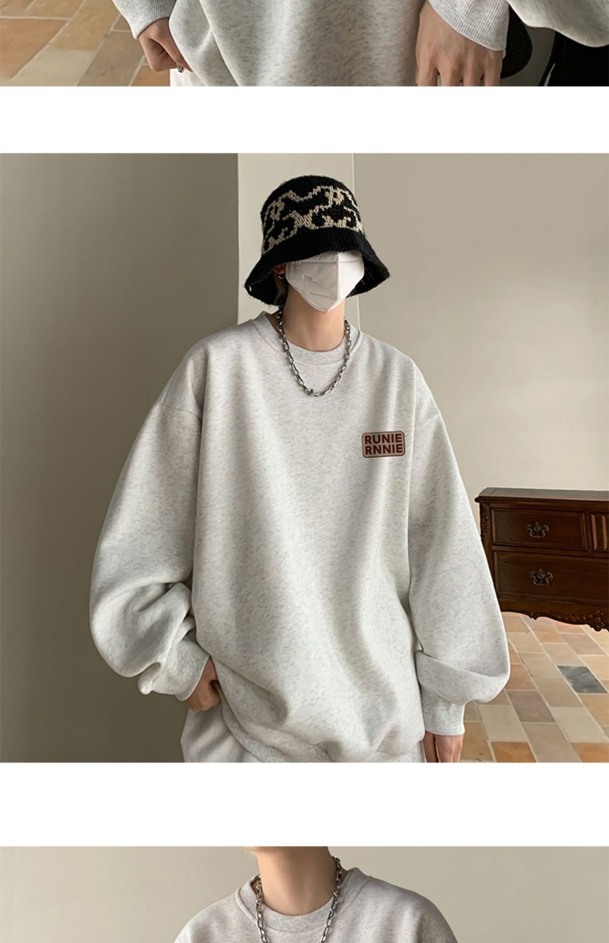 블랙 크루 넥 긴팔 티셔츠 남자 가을 2024 새로운 패션 브랜드 느슨한 플러스 사이즈 불끈한 소년 재킷 스웨트 셔츠스토어 가기