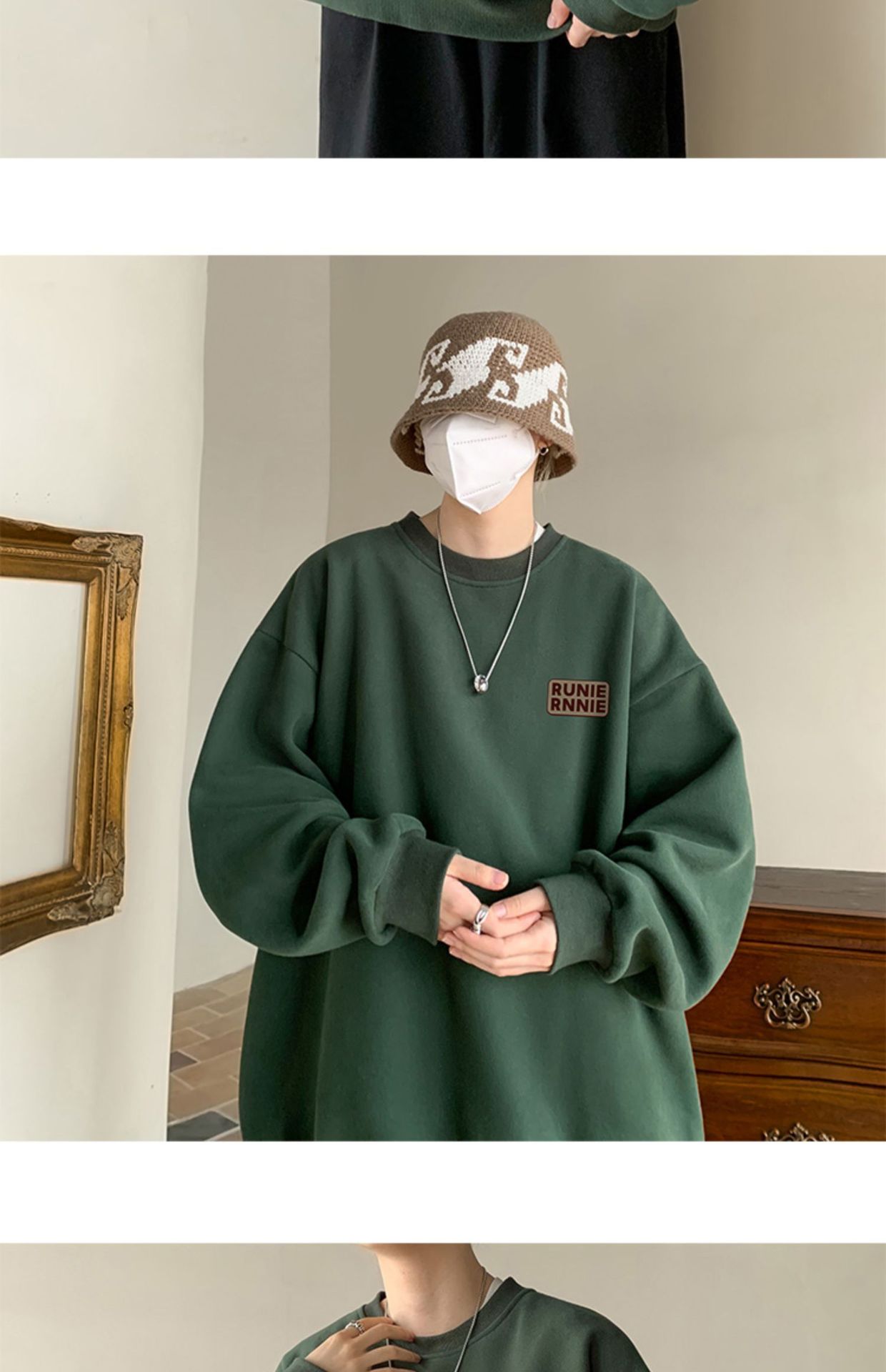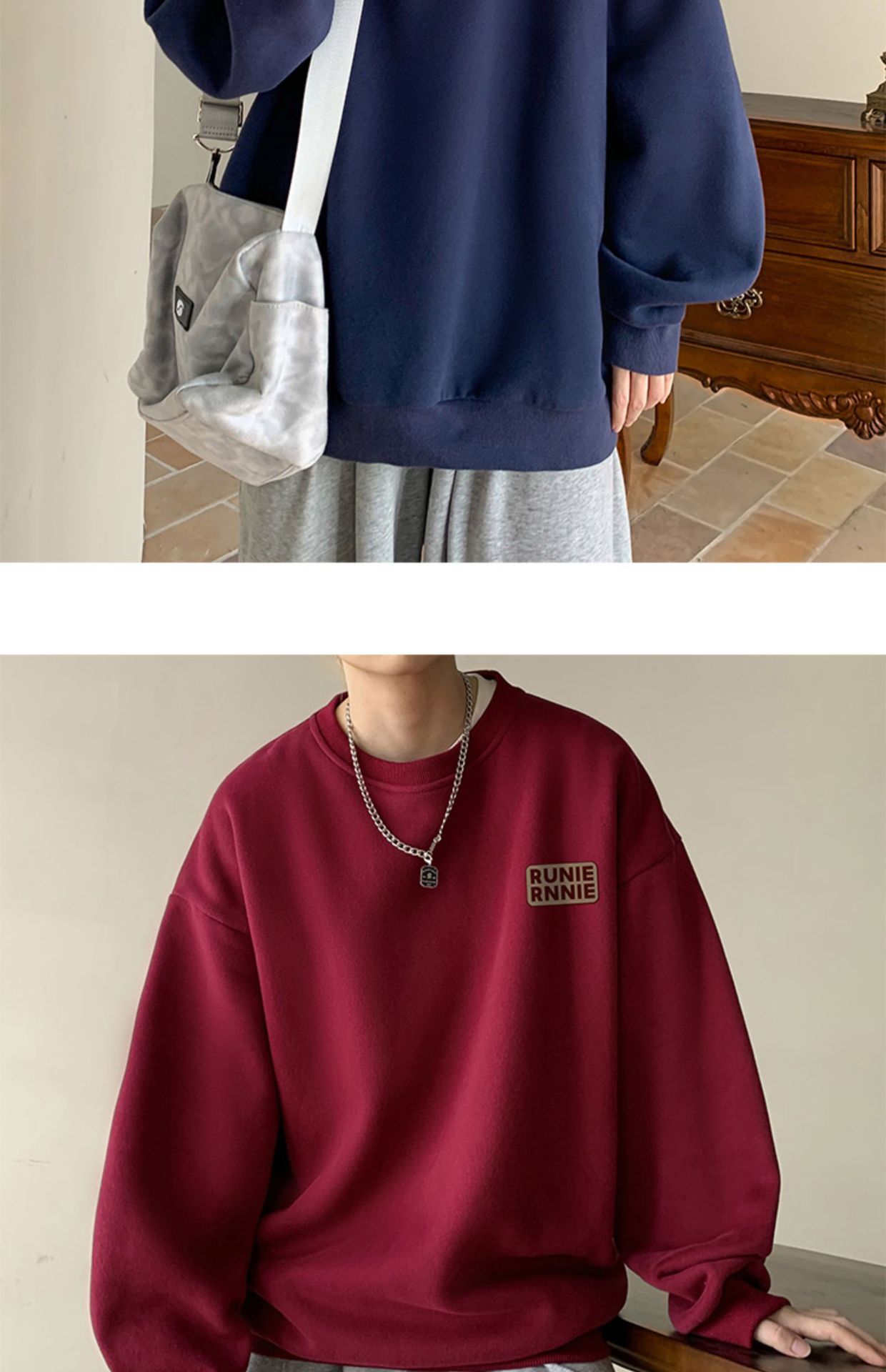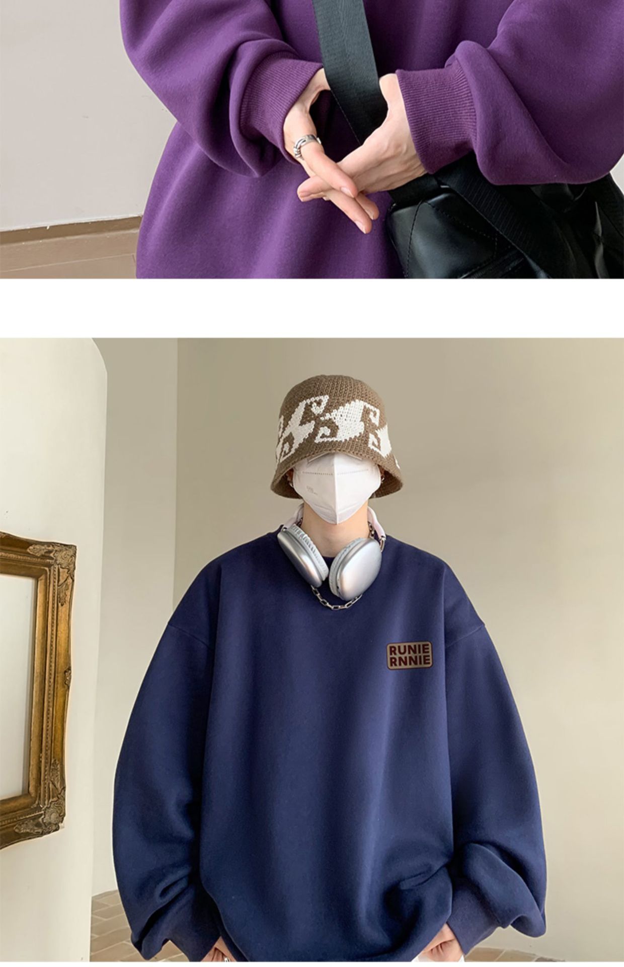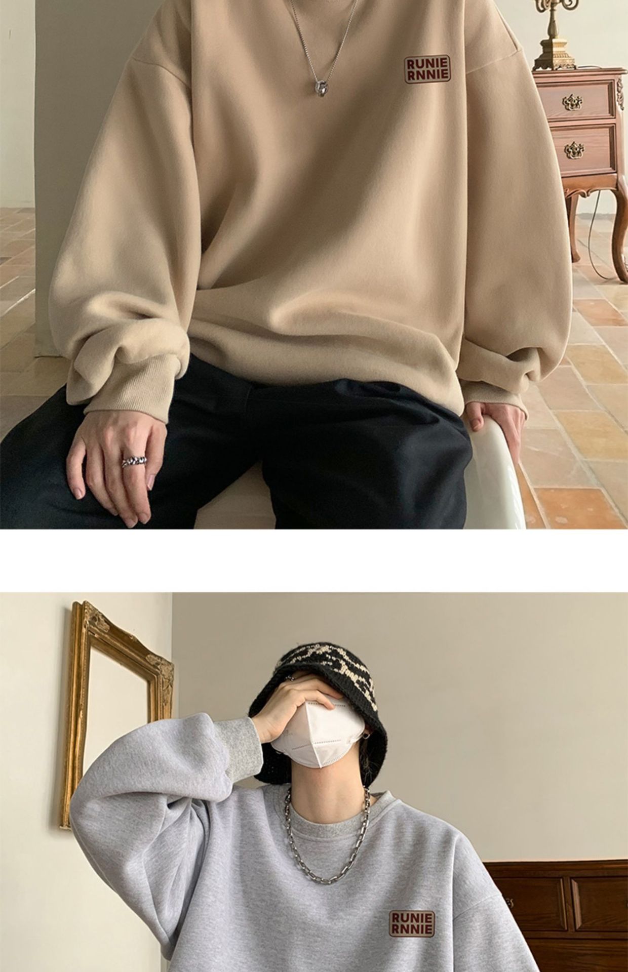 블랙 크루 넥 긴팔 티셔츠 남자 가을 2024 새로운 패션 브랜드 느슨한 플러스 사이즈 불끈한 소년 재킷 스웨트 셔츠스토어 가기