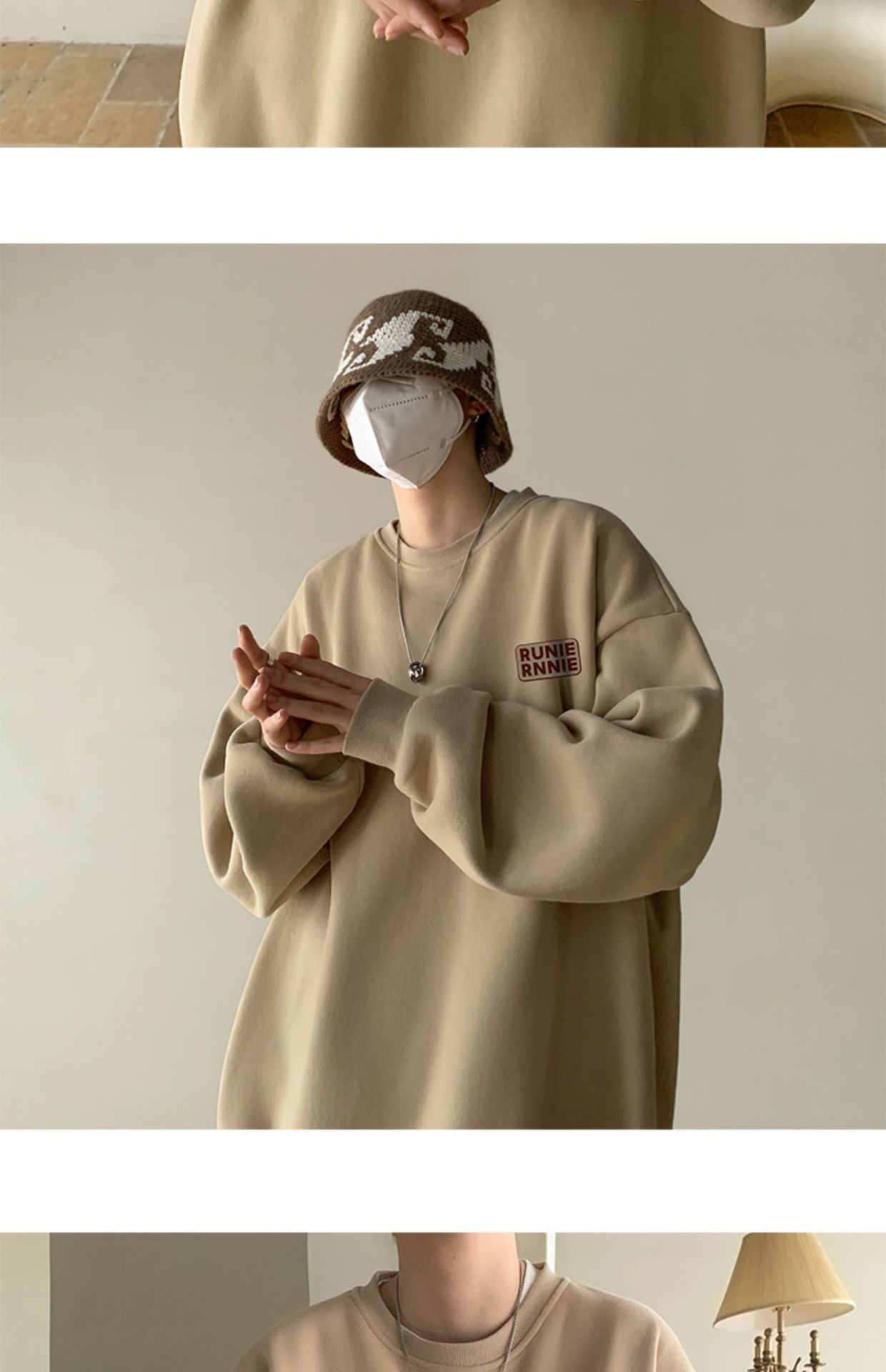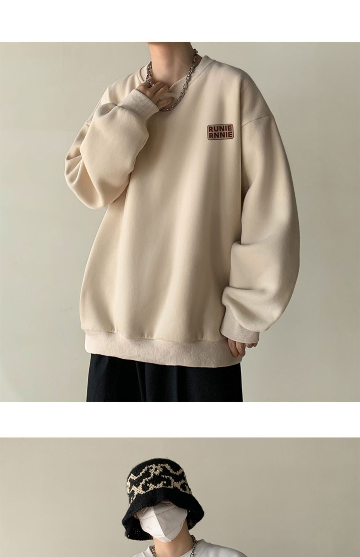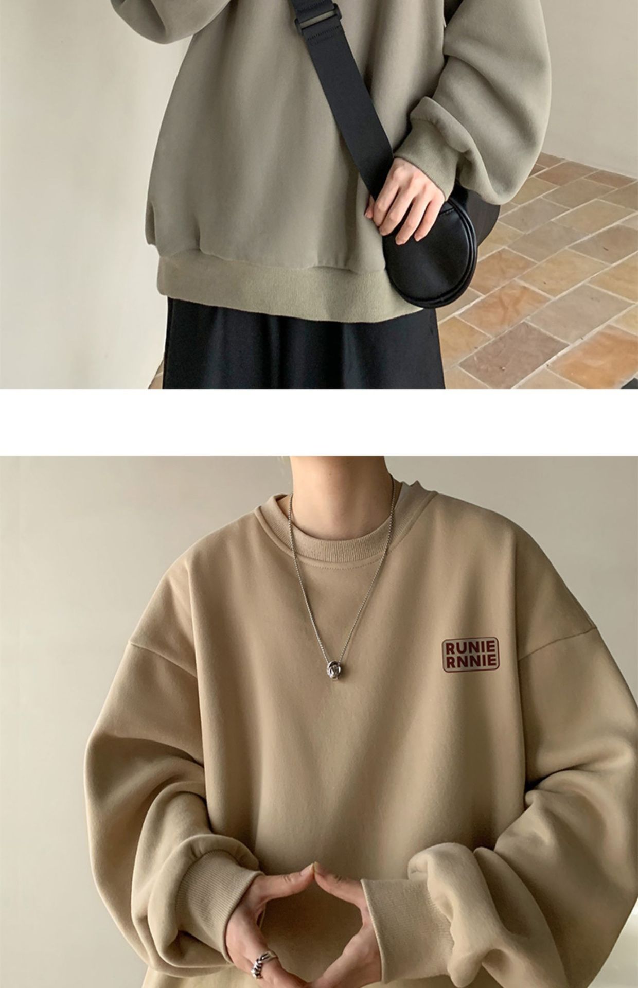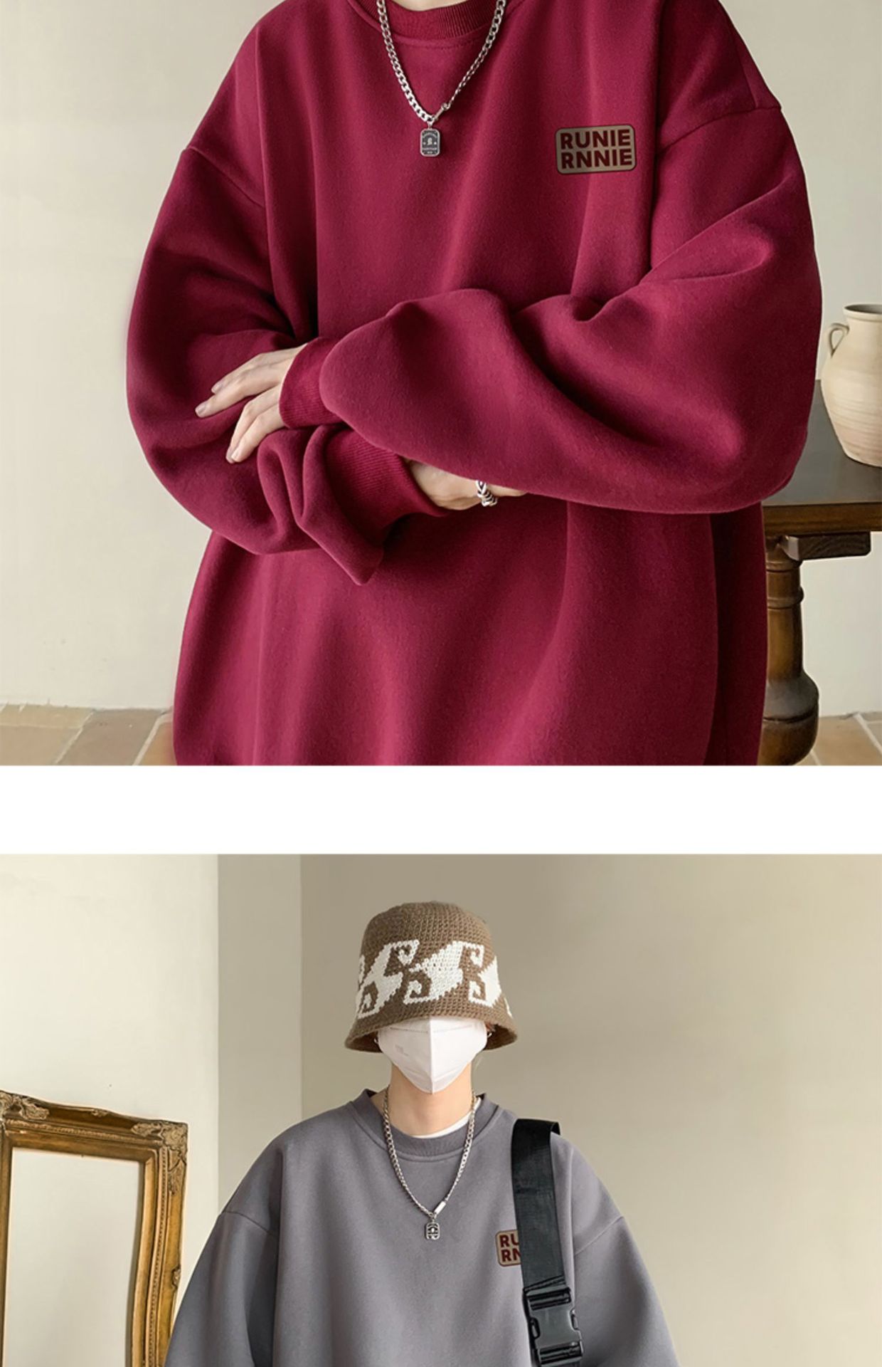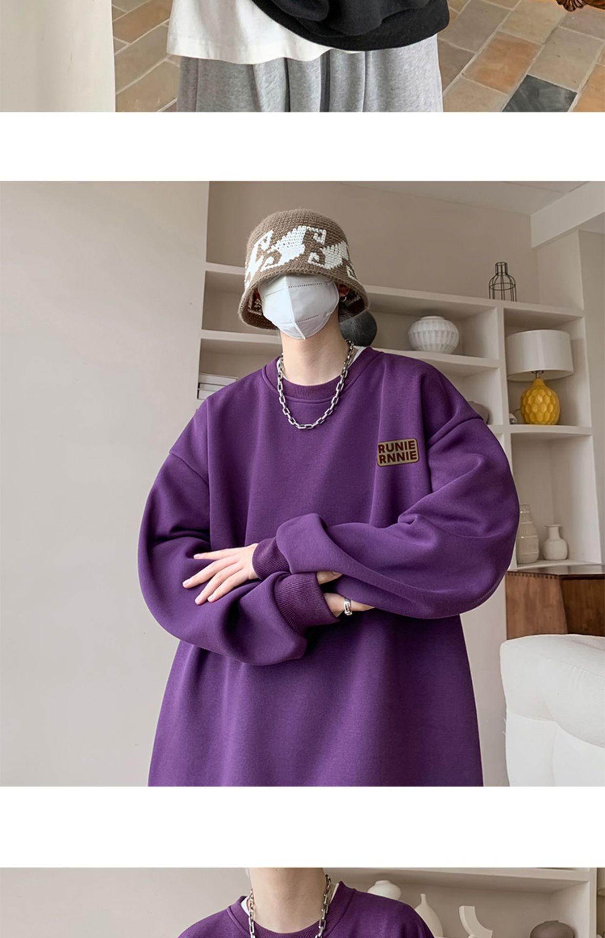 블랙 크루 넥 긴팔 티셔츠 남자 가을 2024 새로운 패션 브랜드 느슨한 플러스 사이즈 불끈한 소년 재킷 스웨트 셔츠스토어 가기