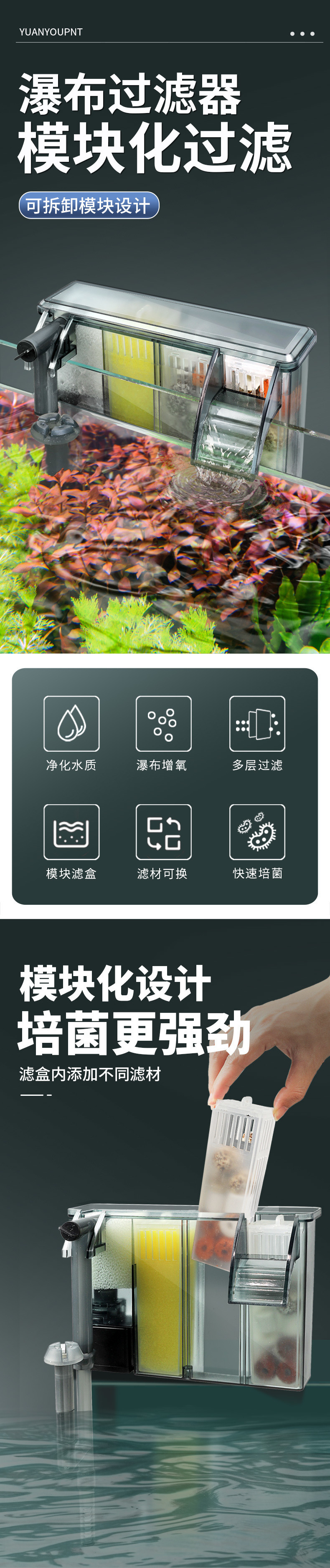 물고기 탱크 필터 외부 필터 배럴 탱크 3 대 1 벽 매달려 작은 침묵하는 물 정화 순환 시스템 재고스토어 가기