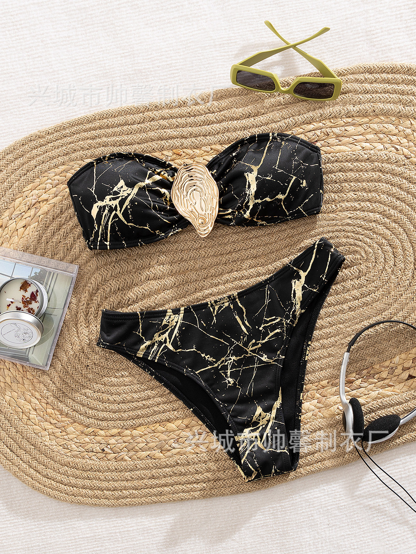 24 새로운 3 차원 장식 수영복 쉘 컬러 비키니 수영복 세트 국경 간 섹시한 분할 수영복