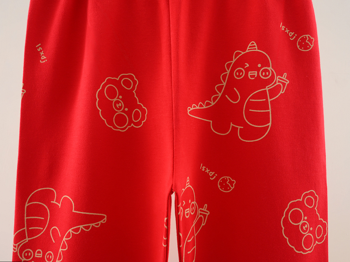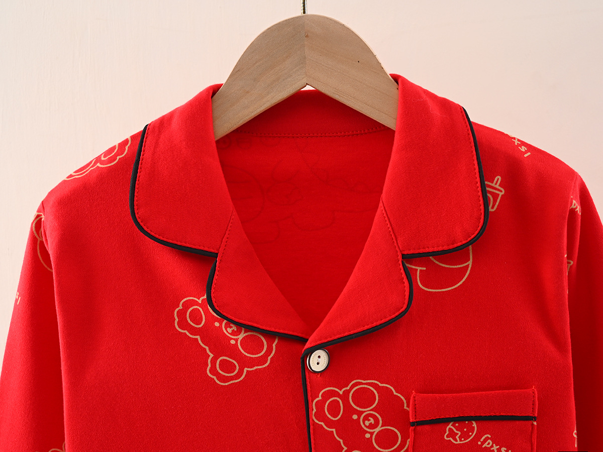 중대형 어린이 순면 잠옷 세트 어린이의 생년월일에 맞춘 긴팔 아기 남아 여아 홈웨어 큰 빨간색