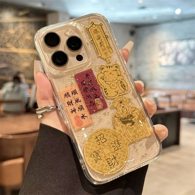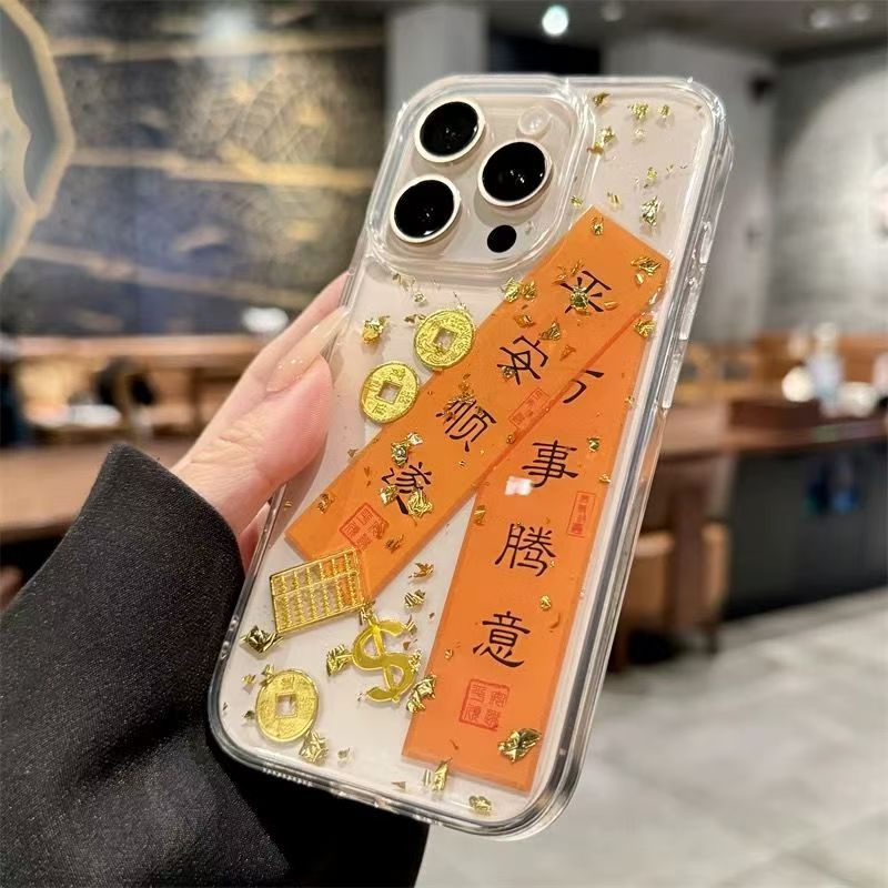 에폭시 금박 행운 문구 아이폰17/애플15ProMax/14/13 휴대폰 케이스 독특한 디자인 12P