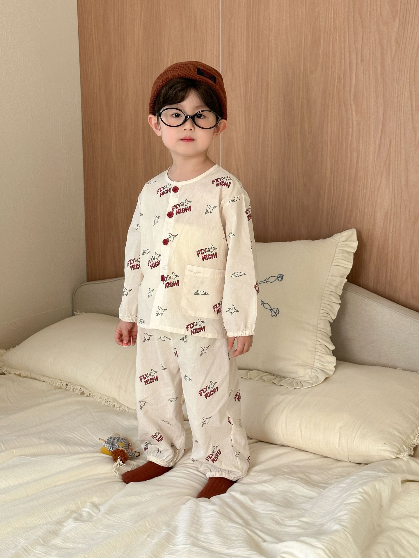 어린이 잠옷 소녀 순면 카테고리 2025 년 새로운 봄과 가을 소년의 긴 소매 세트 아기 홈 옷스토어 가기
