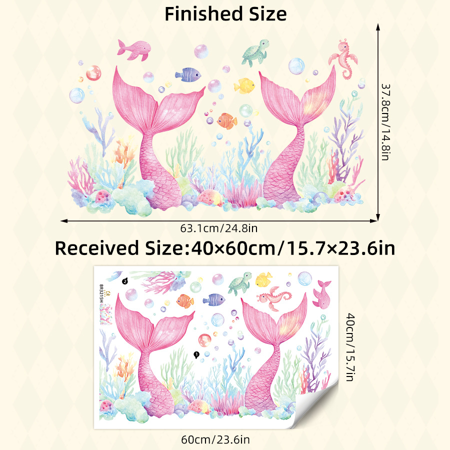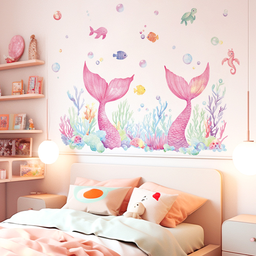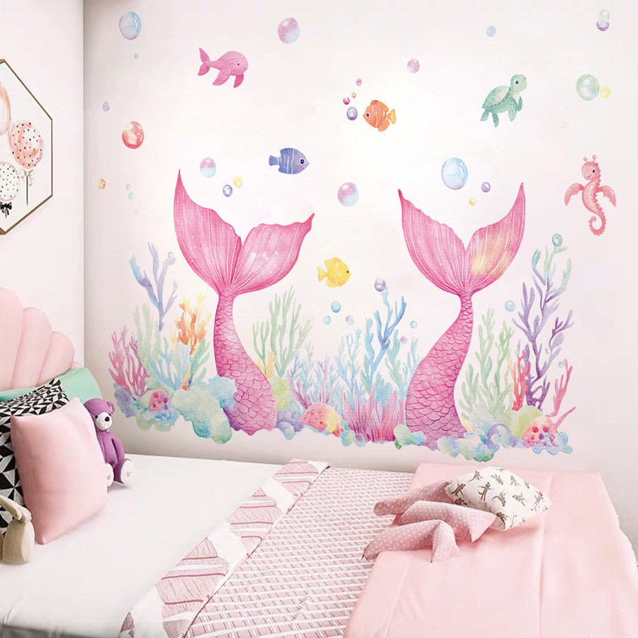 만화 수중 세계 핑크 인어 꼬리 셀프 접착 벽 스티커 Girly 스타일 룸 장식 스티커 BR3215H스토어 가기